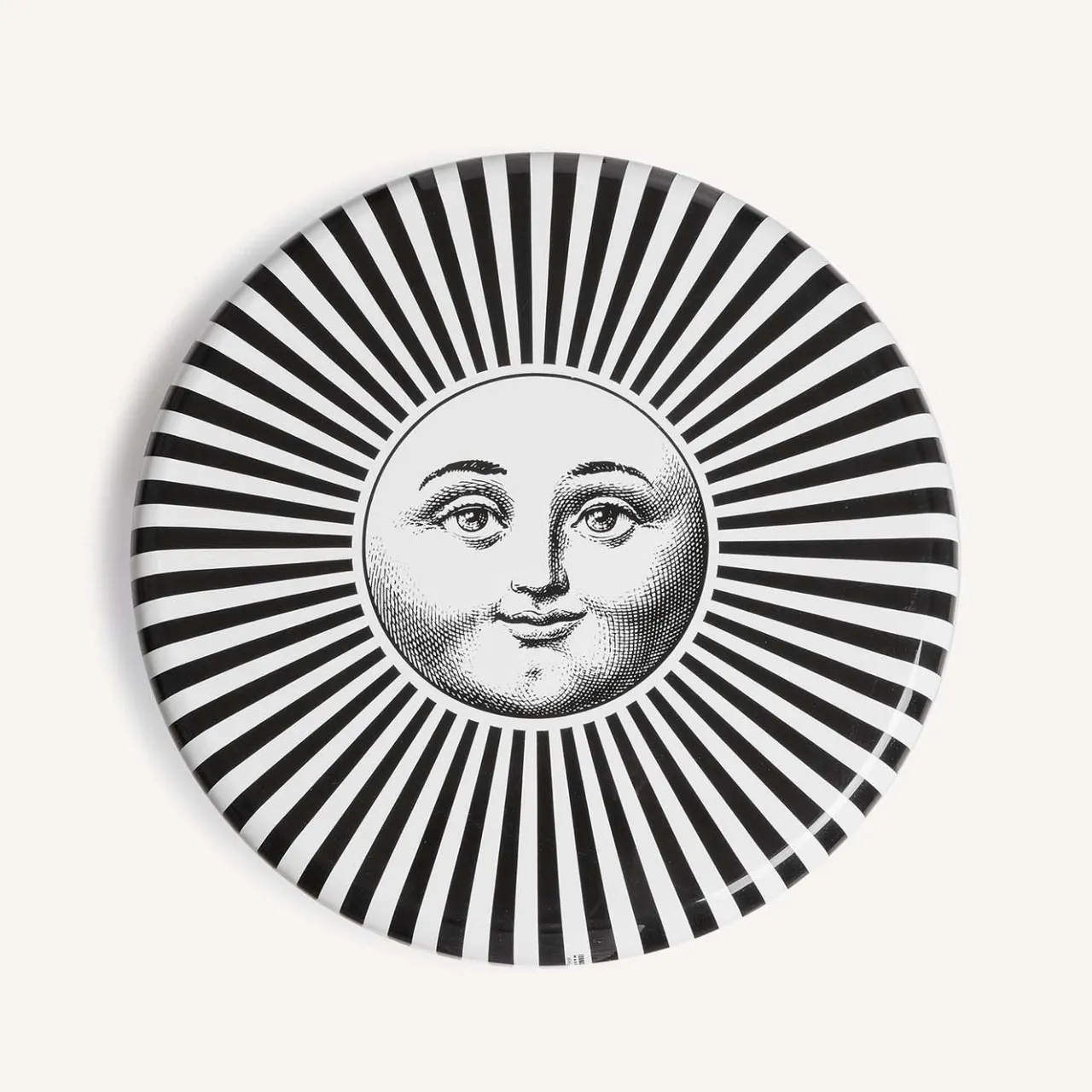 Il sole, amato decoro di Fornasetti, occupa una posizione centrale nella seduta di questo sgabello, serigrafato a mano con accenti dorati e dotato di gambe in legno massiccio. Un pezzo di vero carattere in ogni spazio. Eventuali piccole differenze tra creazioni simili sono il risultato della lavorazione artigianale e attestano l’unicità di ogni prodotto.