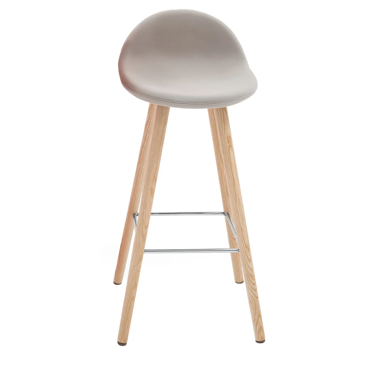 Linee slanciate e finiture naturali che richiamano lo stile scandinavo definiscono il fascino contemporaneo di questo sgabello. Dotato di un poggiapiedi quadrato in tondino d’acciaio cromato, le gambe oblique in frassino naturale guidano lo sguardo verso una seduta compatta ma invitante, imbottita e rivestita in tessuto ignifugo grigio chiaro. Contattare il Concierge per le opzioni di personalizzazione disponibili.