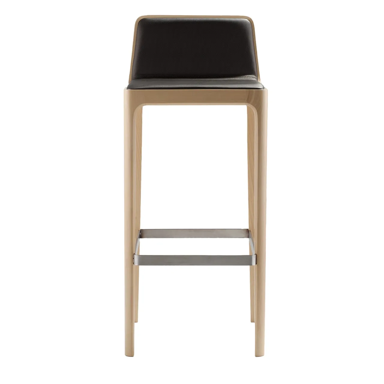 Tip Tap 383 è uno sgabello con seduta e schienale imbottiti e rivestiti in pelle. La struttura è in faggio e tutti gli elementi in legno sono collegati tra loro. La struttura è priva di accessori angolari. Ha un poggiapiedi in metallo e la pelle nella foto è di Cat C, Magnum Tex. Lo sgabello è disponibile anche rivestito in tessuto, per maggiori informazioni rivolgersi al concierge.