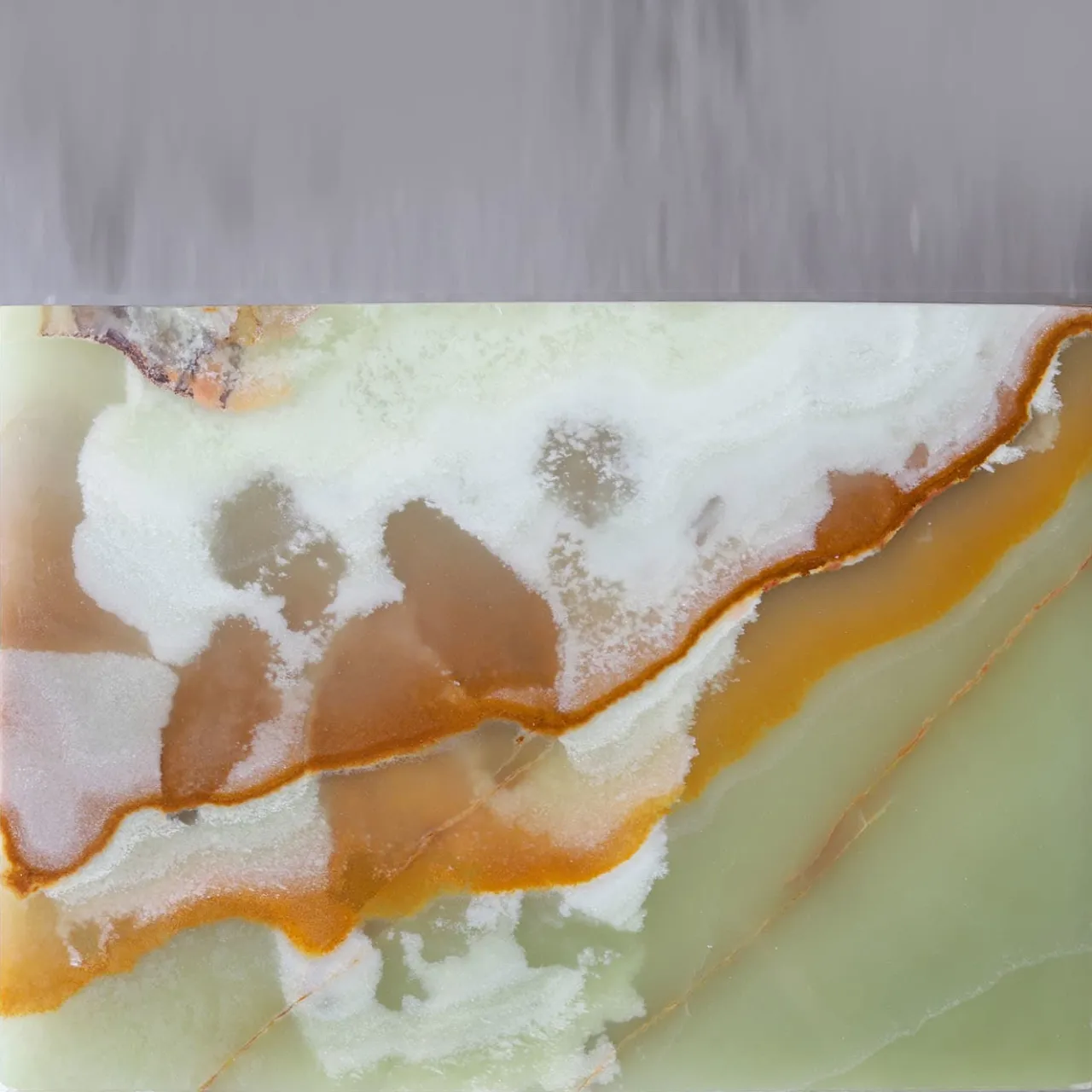 Questo tavolino combina linee eleganti e pietra di marmo scultorea, elegantemente accostata ai ritagli di marmo del piano e dei lati. Una scultura funzionale che gioca con la geometria, l’equilibrio e la natura per elevare il look di qualsiasi spazio abitativo contemporaneo. La base è realizzata in Onice Invisibile Avorio, mentre il resto della struttura e il piano sono in Marmo Onice Verde Giada.