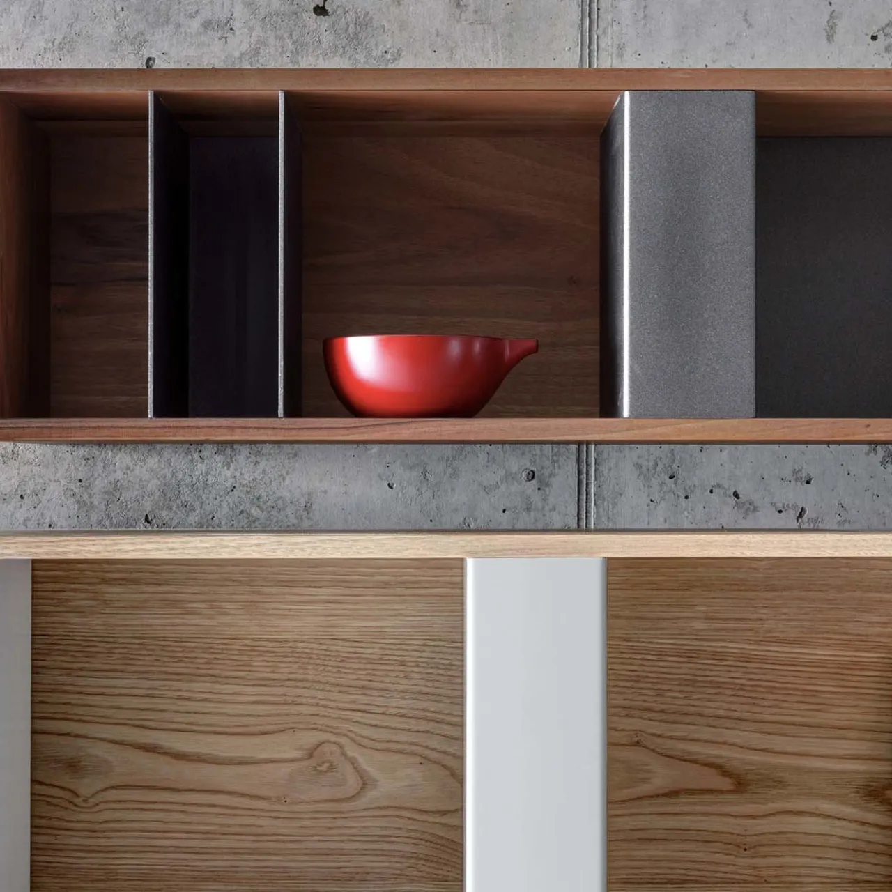 Parte della collezione T Box di Act_Romegialli, questo contenitore sospeso è il massimo dell’eleganza e della superficie espositiva per la casa moderna. Da solo o abbinato ad altri identici in un sistema modulare, questo pezzo abbellirà una parete della cucina, del bagno, del soggiorno o dell’ingresso, pur essendo funzionale. Il suo impatto grafico è dato dall’alternanza di volumi pieni e vuoti, con una struttura in castagno di 13 mm di spessore e divisori in lamiera d’acciaio. Questo pezzo è disponibile in diverse dimensioni, si prega di informarsi presso il Concierge per le opzioni e i prezzi.
