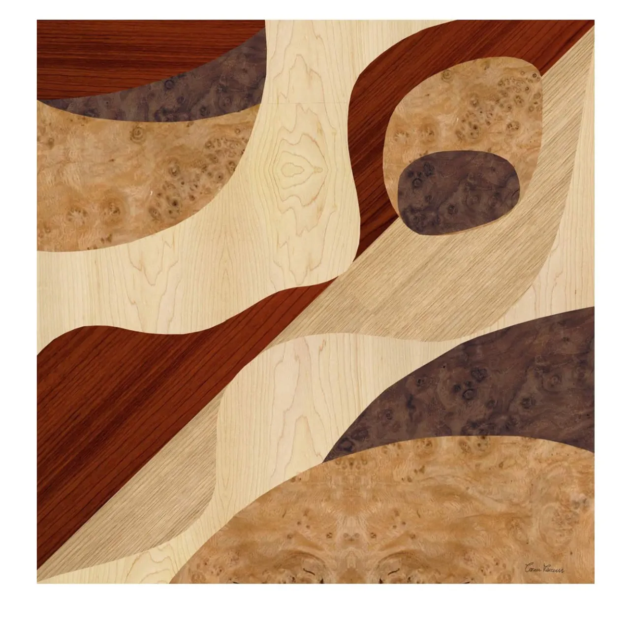 Questo meraviglioso tavolo artigianale appartiene alla collezione di tavoli Tarsia, che vanta intarsi minuziosi ispirati agli antichi mobili dei monasteri e che accennano a riferimenti cubisti. Il piano colorato, in cui gli inserti in legno contrastano nettamente per un impatto ipnotizzante, poggia su una pila di blocchi di tufo per un accento rustico. Ogni pezzo è unico, firmato e accompagnato da un’etichetta con la data di produzione.
