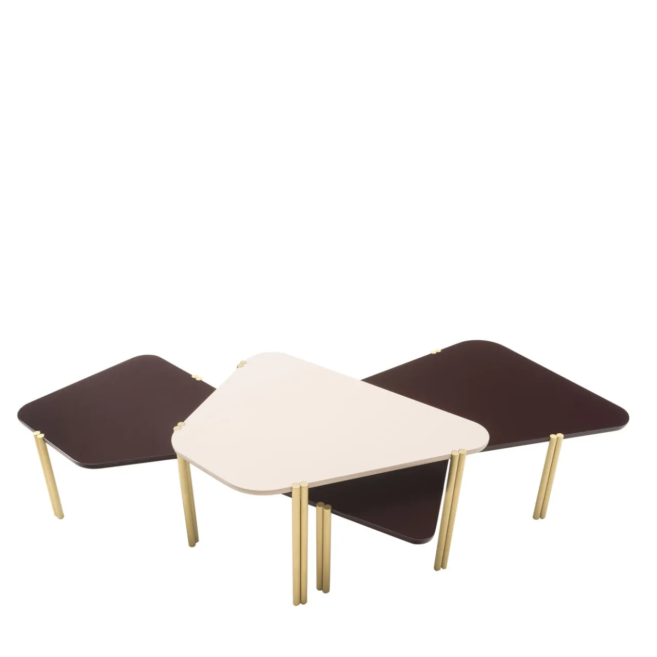 Concetto creativo nato come omaggio a Hans Arp (Jean è il nome che usava quando parlava in francese), questi tavoli fanno parte di una collezione di tavoli asimmetrici e impilabili ispirati alle composizioni astratte dell’artista. Presentato al Salone del Mobile 2018, questo set è composto da due tavoli di forma diversa con piani in legno laccato e gambe in ottone a doppio tubo: quello scuro ha una silhouette dinamica con linee spezzate ammorbidite da una curvatura irregolare, mentre il tavolo più piccolo e chiaro ha una forma trapezoidale. Impilati, coesistono perfettamente tra loro, adattandosi a qualsiasi esigenza d’arredo.
