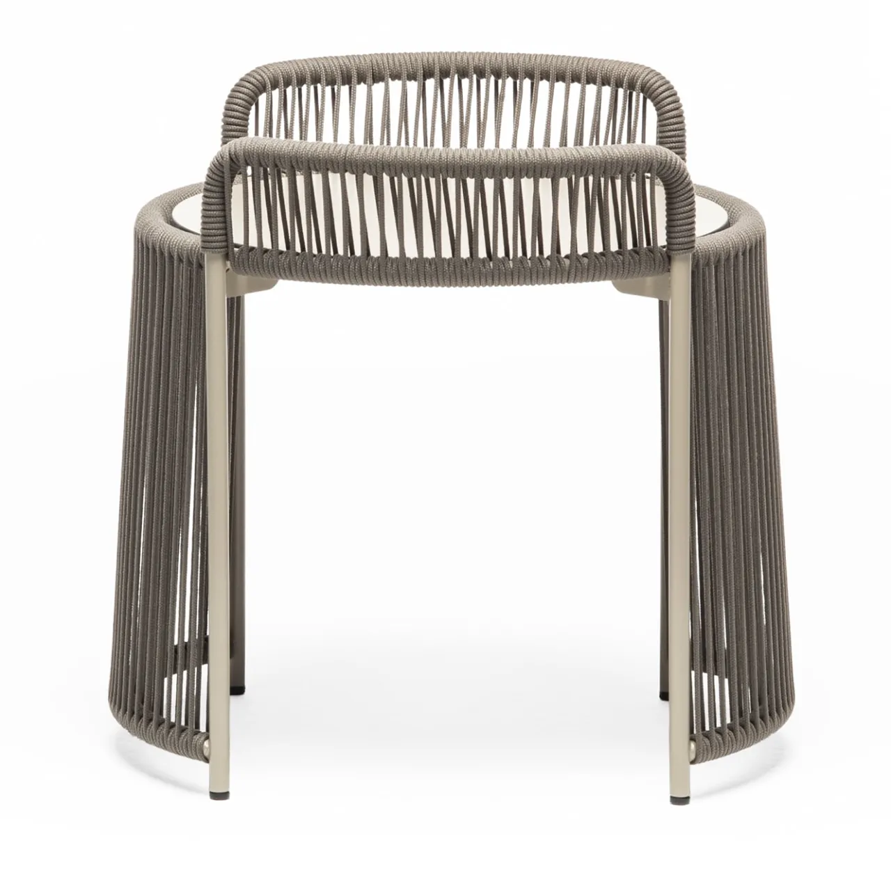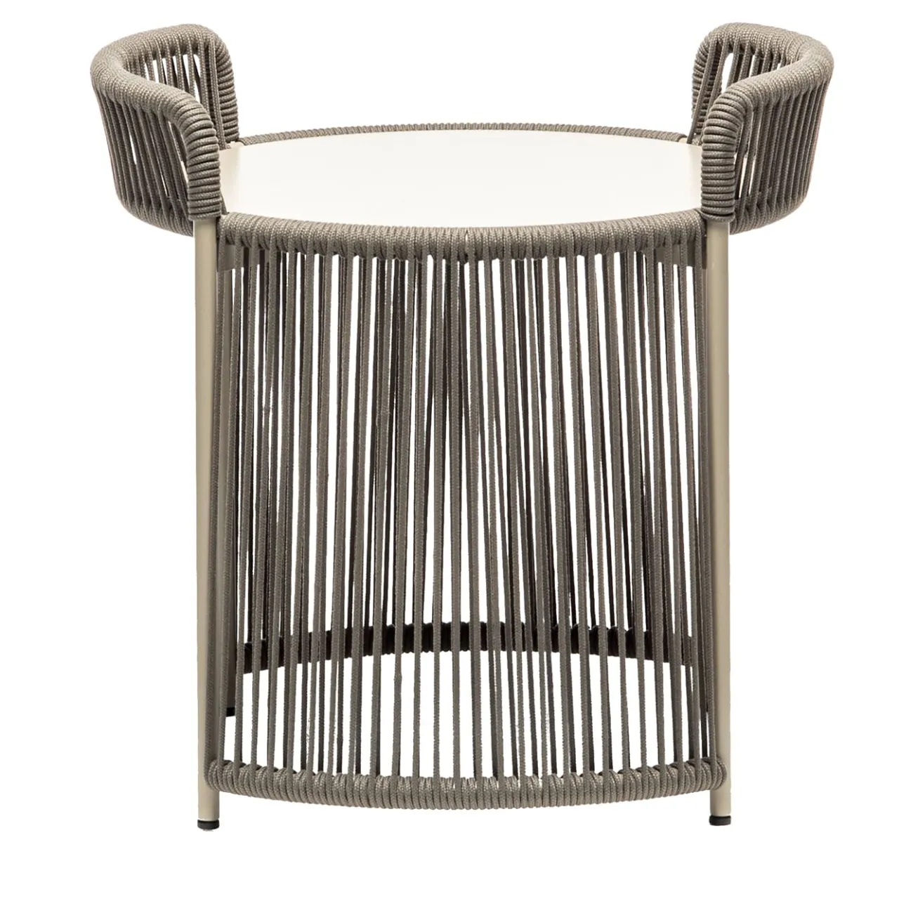 Tranquillo nella palette quanto accattivante nel design, questo tavolino compatto rappresenta una soluzione originale per esporre una lanterna o servire una tazza di tè in sofisticati contesti outdoor. La robusta struttura in acciaio verniciato a polvere color sabbia è ricca di curve armoniose, abilmente avvolte da corde marine grigie in grado di evocare scenari marini e di creare intricati tracciati di indubbio fascino visivo. Completa il tutto un piano rotondo in HPL. Per altre dimensioni e colori, consultare il catalogo Artemest.