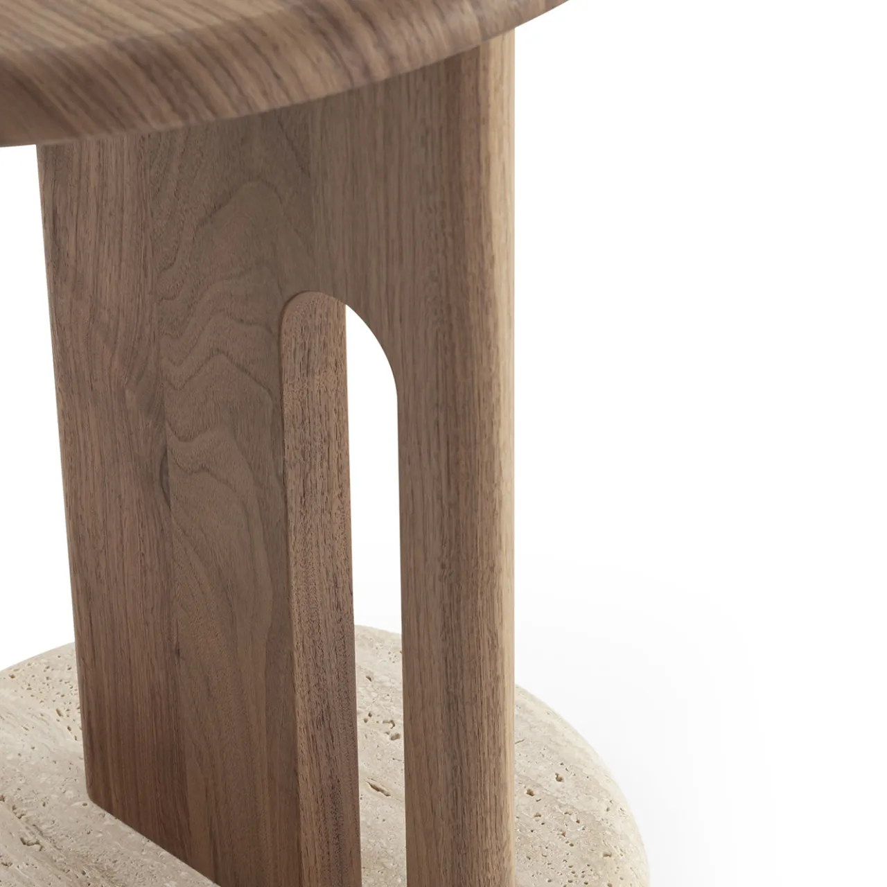 Questo tavolino presenta un piano in MDF impiallacciato in noce Canaletto, con finitura a pressatura a membrana. La struttura tornita sostiene il piano del tavolo, mentre la base è realizzata in autentico marmo Travertino romano con una texture a poro aperto, combinando elementi naturali per un aspetto raffinato. Progettato per completare gli interni moderni, questo pezzo offre sia appeal estetico che funzionalità.