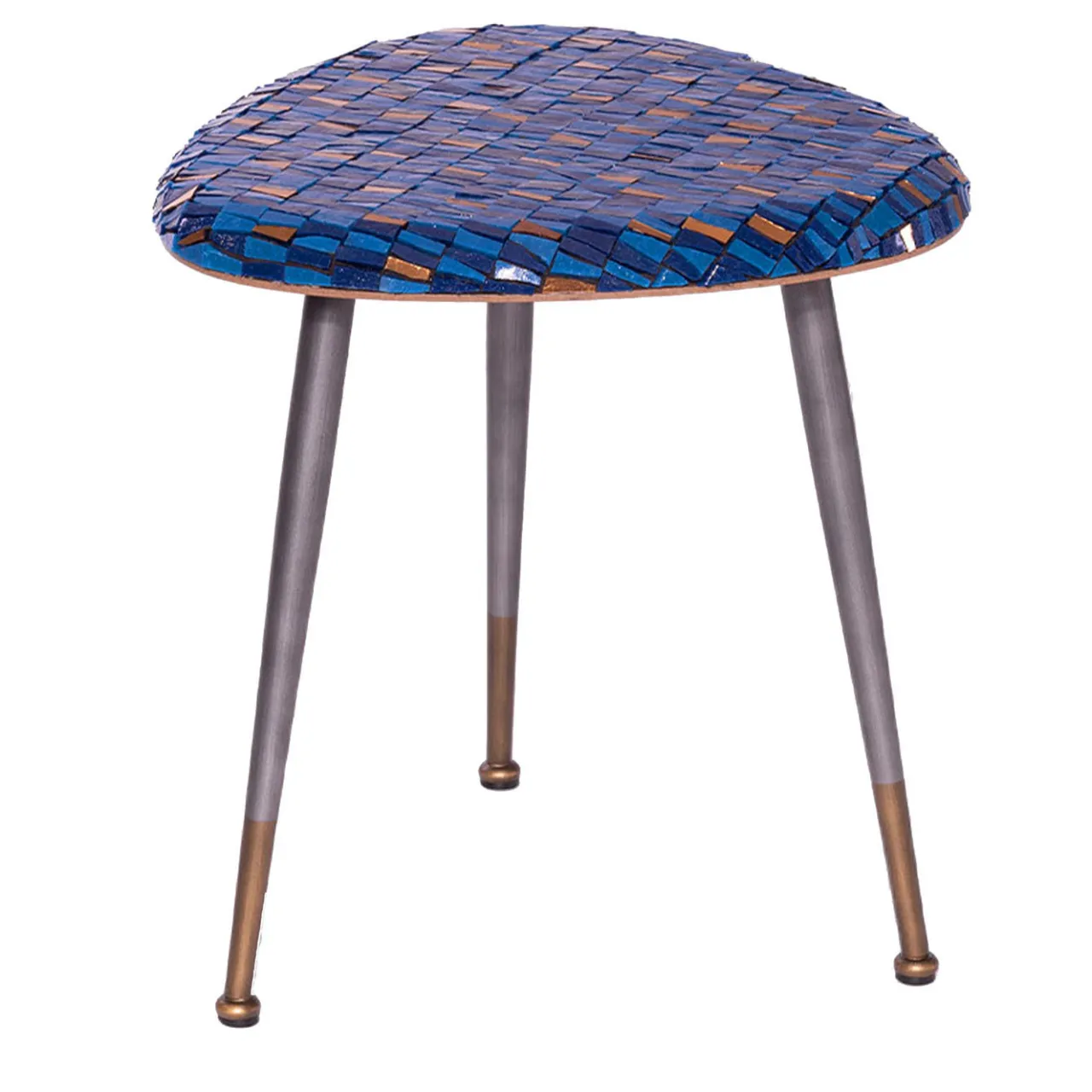 Stupefacente nella sua semplicità, questo tavolino appartiene a una serie caratterizzata da un piano triangolare ricoperto da tessere di mosaico di vetro realizzate artigianalmente da Orsoni e assemblate a mano da Michela Nardin. Un design di eleganza senza tempo che riflette l’impareggiabile maestria degli artigiani italiani, l’Acqua è composto da 2100 tessere in due gradazioni di blu e alcune arricchite da lamine d’oro 24k, che creano un gioco ipnotico di texture e riflessi. Le gambe, realizzate in Toscana, sono rifinite in ottone anticato.