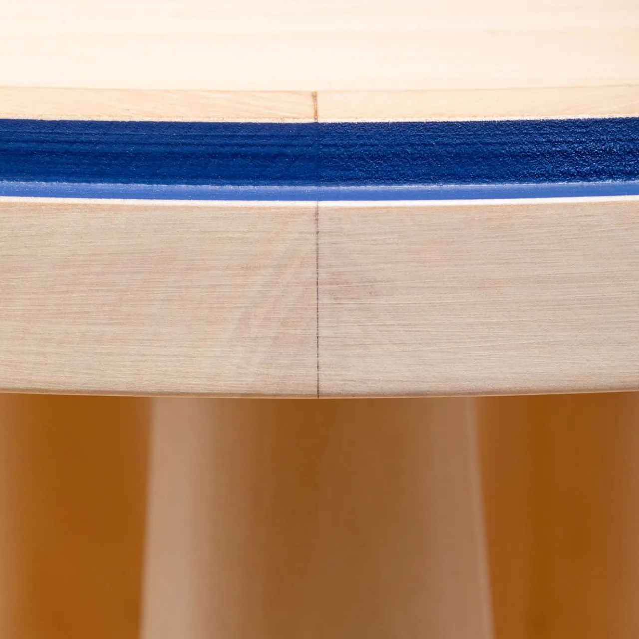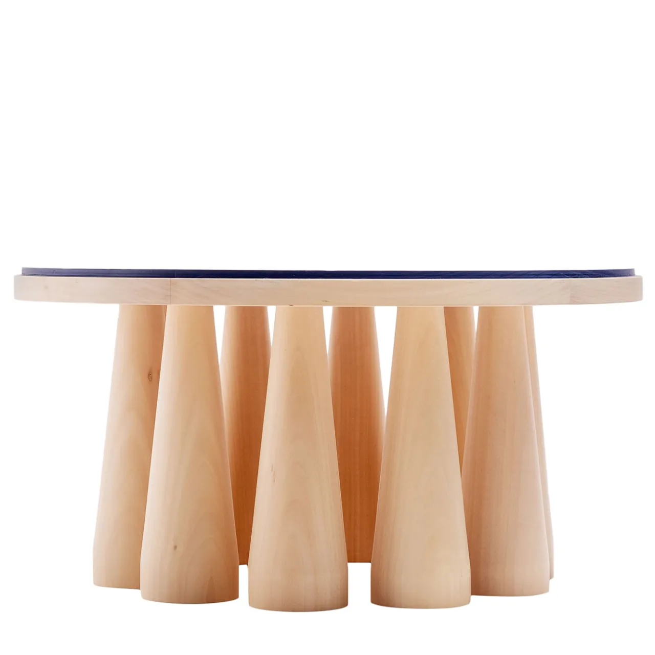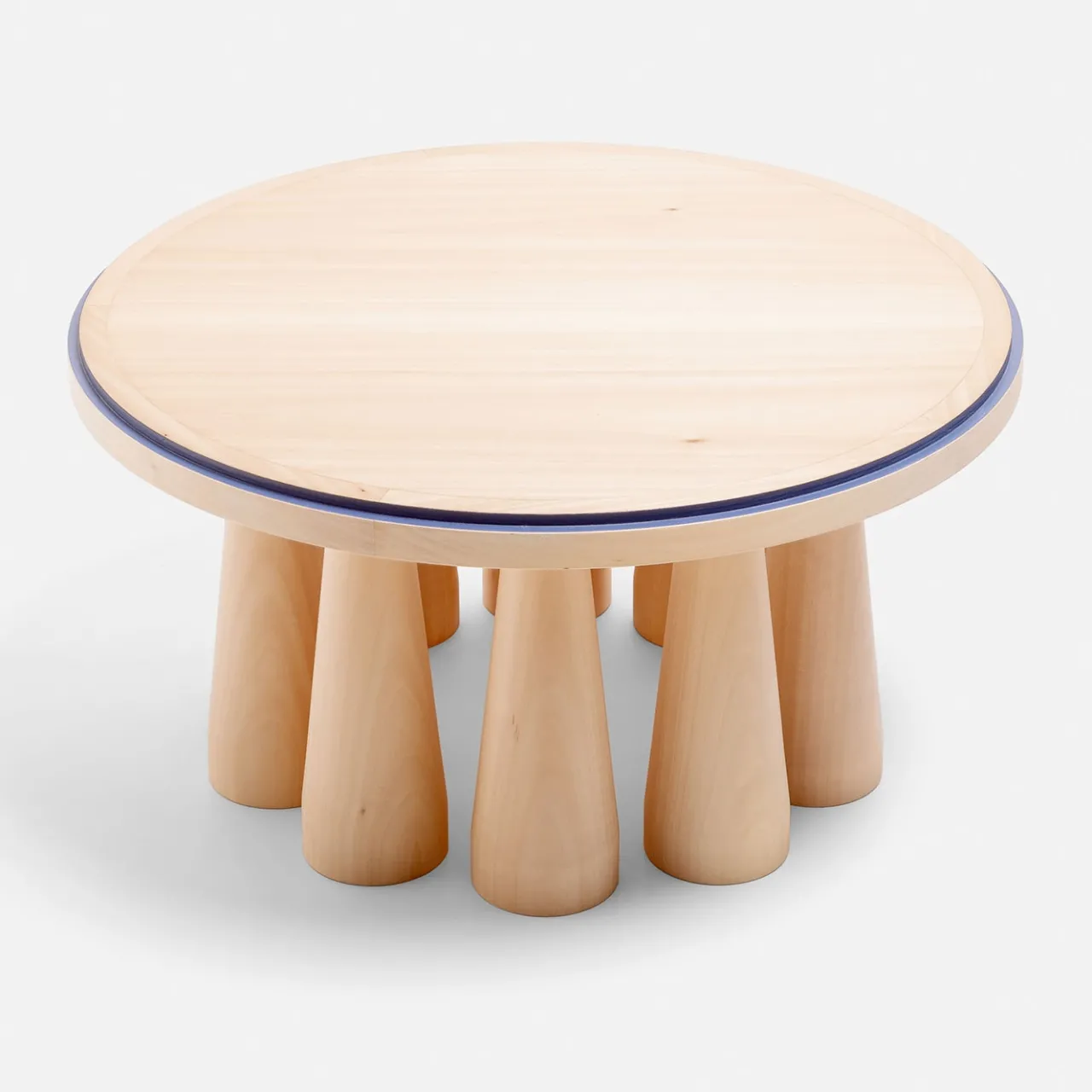La collezione Bogdan nasce da un unico tronco di tiglio, un’intera famiglia generata da un elemento specifico. Un mobile monomaterico, caratterizzato solo da una distinta linea di colore che ne definisce il perimetro e la forma. I coni alla base, disposti in cerchio per creare un unico elemento visivo, sostengono il piano che si configura come parte unificante di ciò che lo solleva. Le coste fresate colorate impreziosiscono e completano il piano, creando giochi di chiaroscuro tutt’intorno.