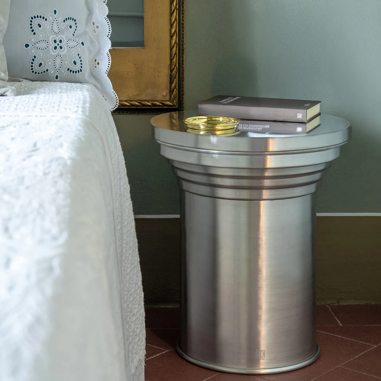 Tavolino scultoreo dal design minimalista e contemporaneo, ispirato alla forma del capitello. La finitura in alluminio spazzolato conferisce una superficie liscia e satinata, perfetta per ambienti moderni, industriali o minimalisti. Versatile nelle sue applicazioni, può fungere da supporto espositivo per oggetti decorativi, tavolo laterale nel soggiorno o elemento contenitivo in camera da letto, ideale sia per spazi residenziali che contract.