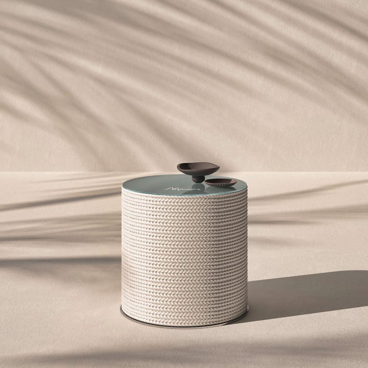 Raffinati richiami allo stile nautico e una fresca palette di colori che ricorda le bianche coste lambite dalle onde azzurre rivelano l’ispirazione marina di questo tavolino dal taglio ovale. Ideale per completare un raffinato arredamento da barca o da spiaggia, si distingue per le corde bianche in PLA (poliuretano) strettamente arrotolate intorno al corpo dal taglio ovale. Adatto anche per appoggiare occasionalmente un vassoio o una lampada da tavolo.