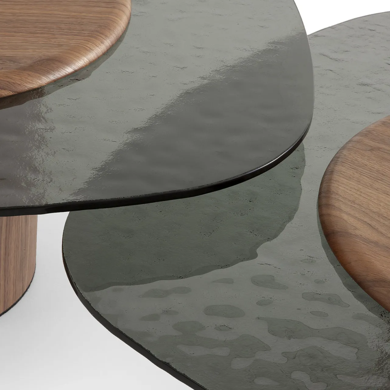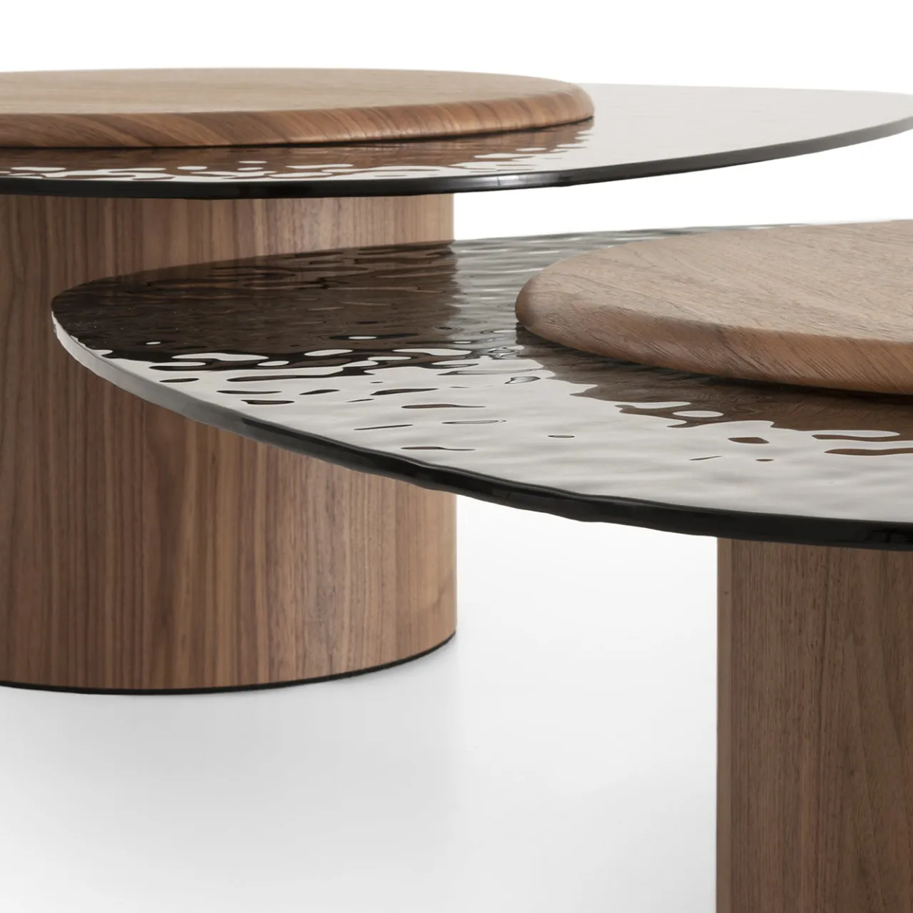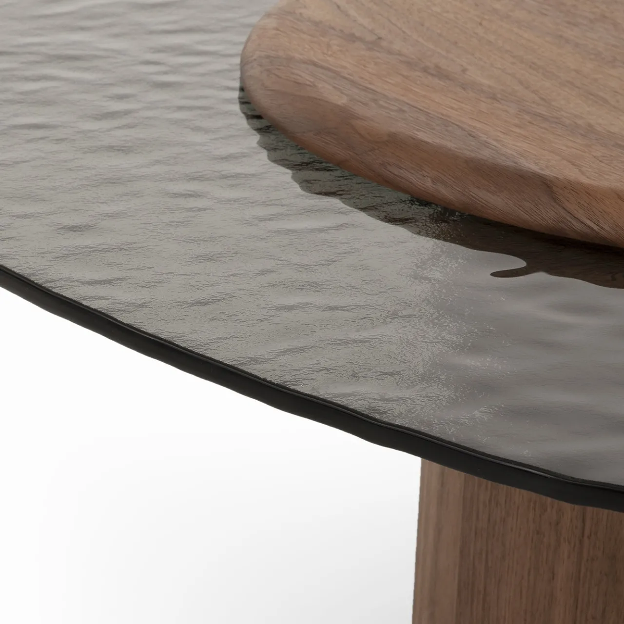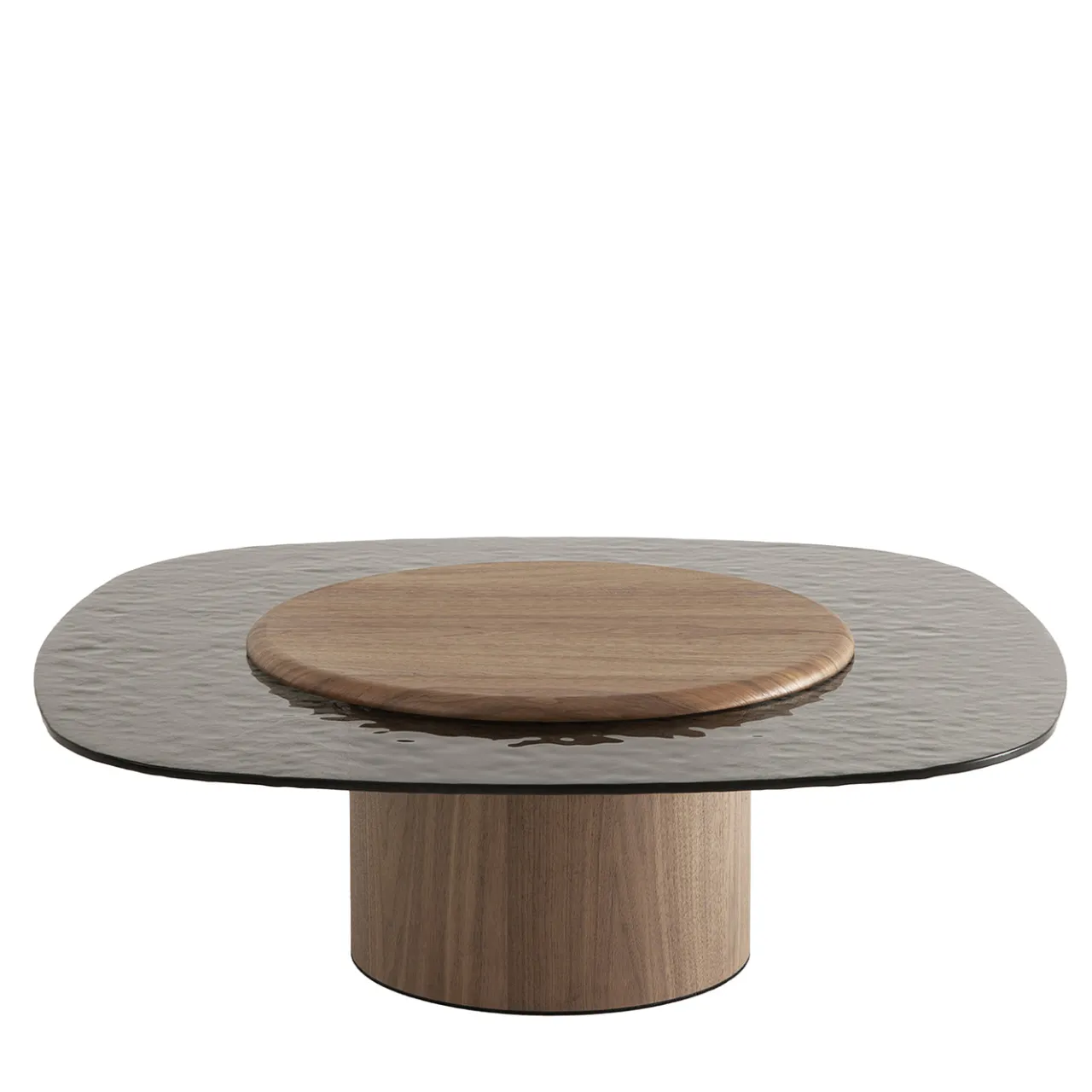 Egg Basso è un tavolino da caffè ovale di medie dimensioni con una base cilindrica finita in impiallacciatura di legno. Il tavolo è sormontato da una superficie in vetro fumé testurizzato, completato da una piattaforma in legno secondaria con un design a membrana pressata. La combinazione di texture lisce e ondulate migliora sia la funzionalità che l’appeal visivo negli spazi abitativi contemporanei.