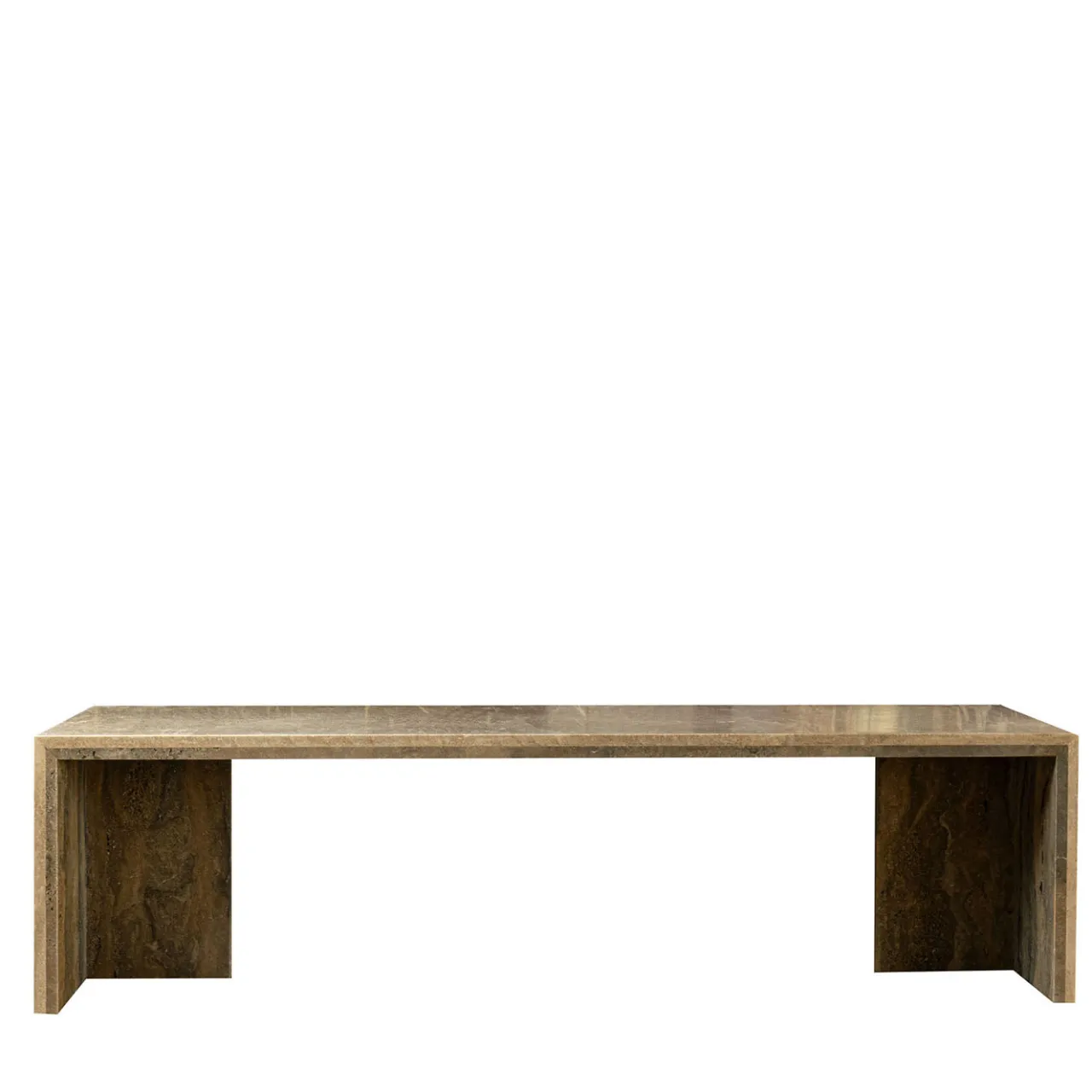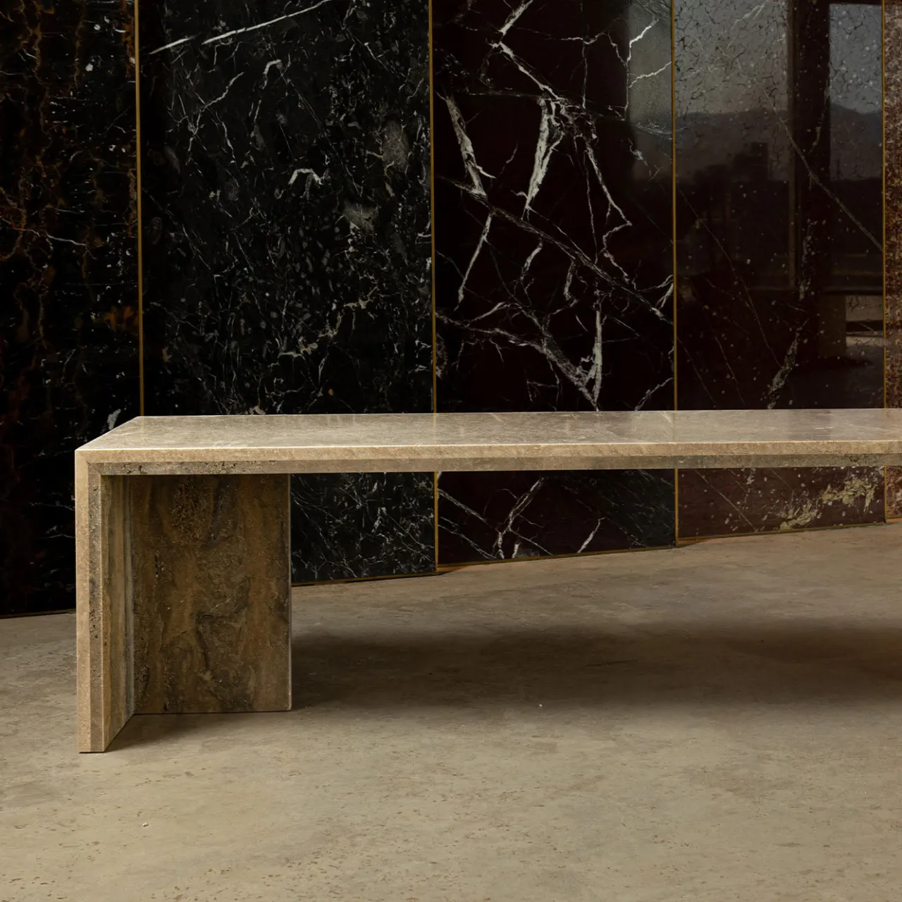 Un tavolino da caffè minimalista caratterizzato da linee rigide e pulite e da una tonalità sobria che enfatizza la semplicità della sua forma. La sua superficie in travertino offre una texture raffinata e naturale, combinando eleganza e lusso discreto adatto per interni moderni. Le dimensioni medie e le proporzioni equilibrate lo rendono un pezzo d’arredo ideale per ingressi, soggiorni o uffici.