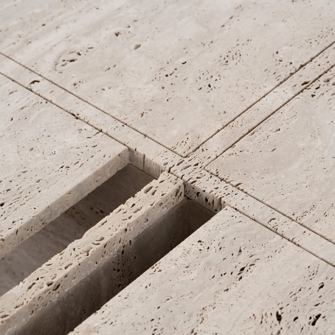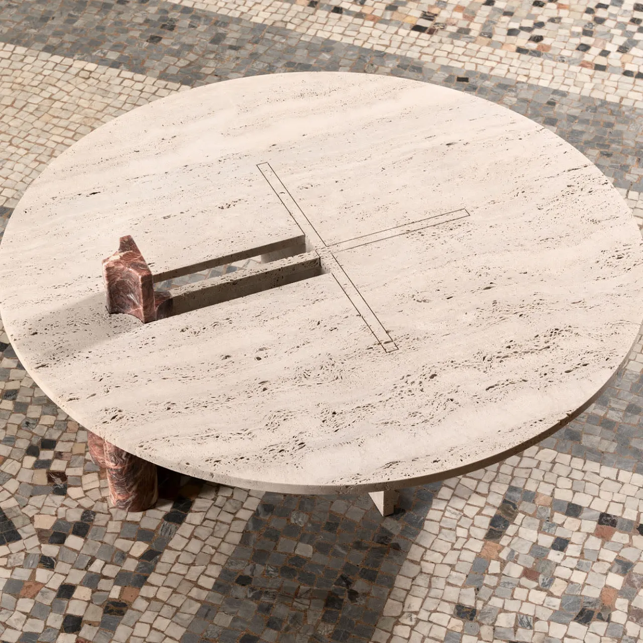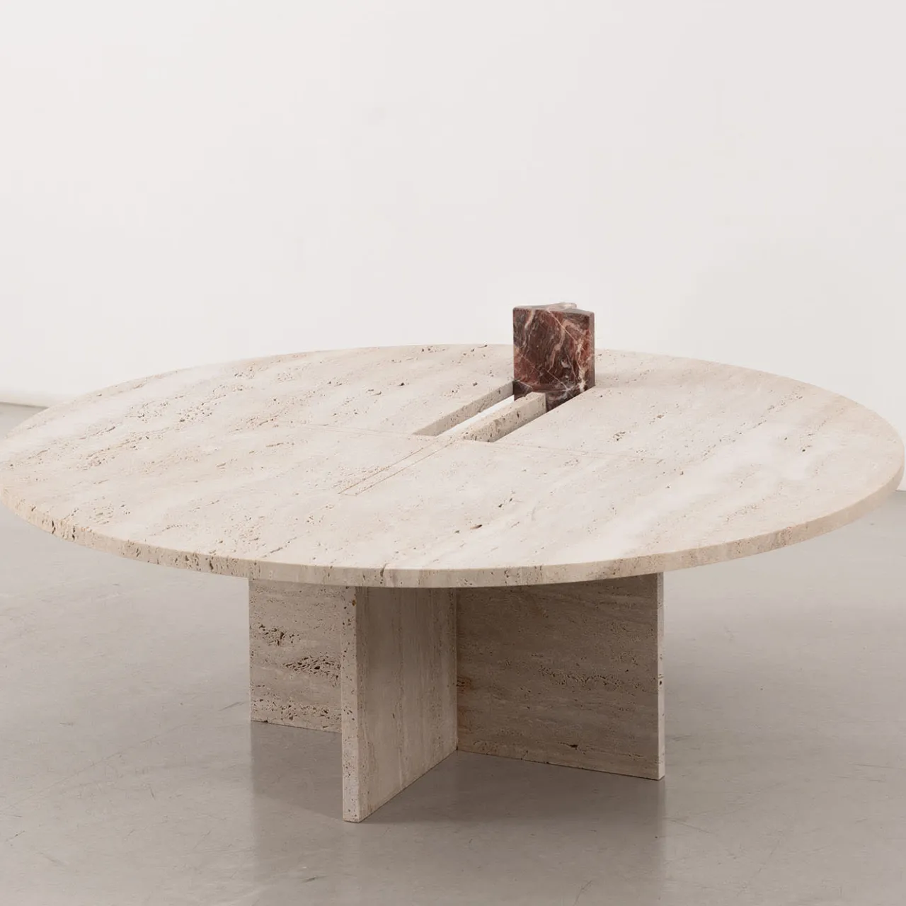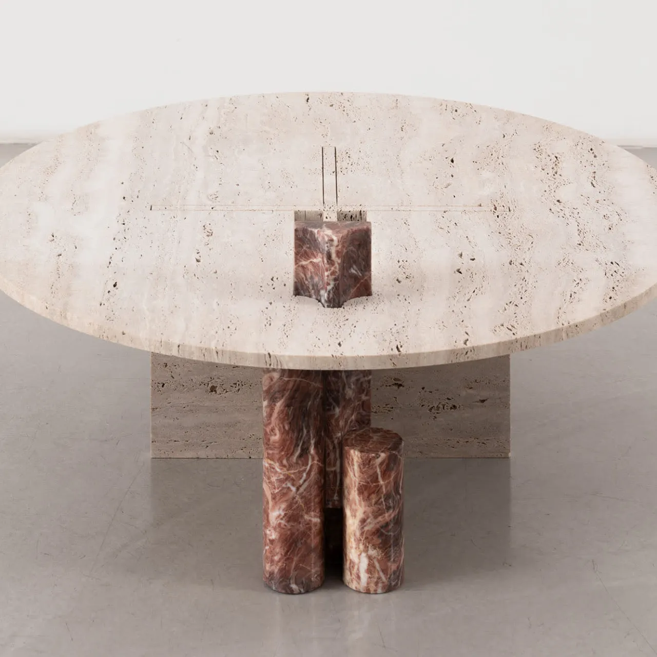 Tavolino da caffè Mostro V in travertino e marmo Rosa Peralba*MMOOS. Clearance