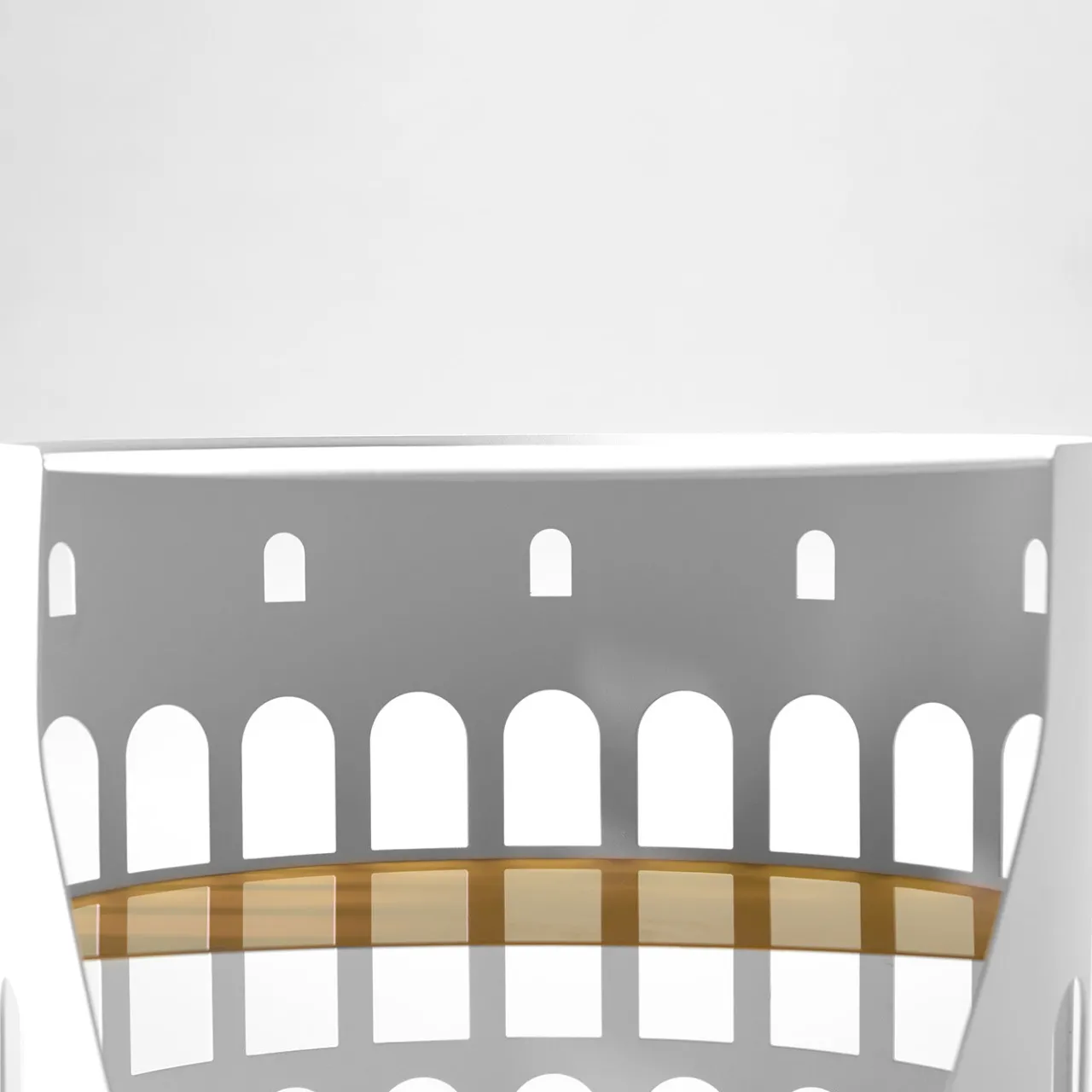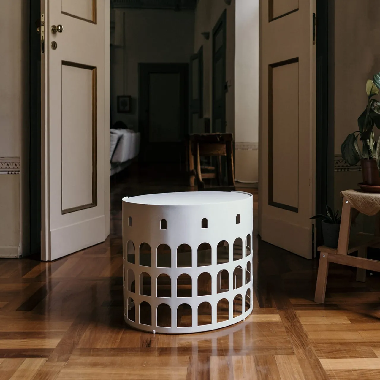 Ispirato al fascino senza tempo del Colosseo, “Flavio” è un tavolino che reinterpreta l’architettura dell’Anfiteatro Flavio in chiave contemporanea. Realizzato a mano in acciaio verniciato a polvere bianco opaco, presenta una silhouette ovale con archi che richiamano il suggestivo gioco di luci e ombre del celebre monumento. Un ripiano intermedio dorato, nascosto tra gli archi, aggiunge funzionalità e un tocco di lusso discreto, perfetto per piccoli oggetti decorativi. Più che un tavolino, “Flavio” è una dichiarazione di stile che valorizza qualsiasi ambiente. È disponibile in altri colori, per informazioni contattare il concierge.
