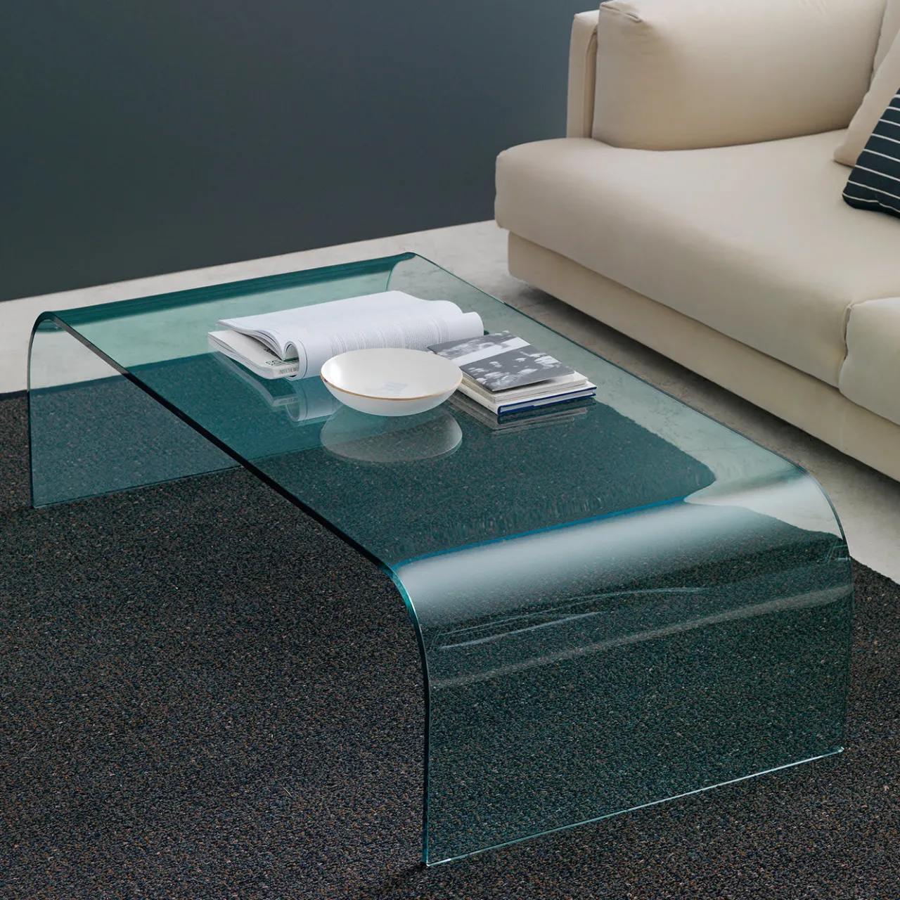Ricordando il movimento fluido dell’acqua in una fontana, questo tavolino di Pietro Chiesa è uno straordinario oggetto di design che si distingue per l’essenzialità delle linee e l’eleganza. È ottenuto piegando un’unica lastra di vetro dello spessore di 15 mm con finitura lucida. È disponibile in quattro diverse dimensioni, per i cui dettagli si prega di rivolgersi al Concierge. Questo articolo è cablato solo per 220V e viene venduto con un adattatore.