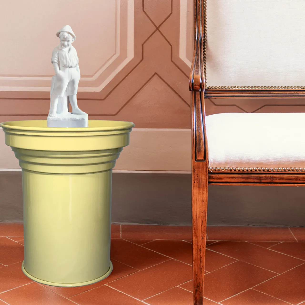 Questo tavolino unisce suggestioni classiche e gusto contemporaneo, richiamando nei suoi volumi scultorei la forma dei capitelli antichi. Le linee morbide e arrotondate sostengono un piano superiore rimovibile che funge anche da vassoio, aggiungendo praticità all’eleganza del design. Realizzato in alluminio verniciato opaco, si distingue per la finitura setosa e burrosa che ne esalta il carattere raffinato e moderno. Versatile e sofisticato, si presta a essere utilizzato come tavolino, tavolo da caffè o superficie espositiva, trovando la sua collocazione ideale in abitazioni private, spazi contract o showroom dal gusto ricercato.