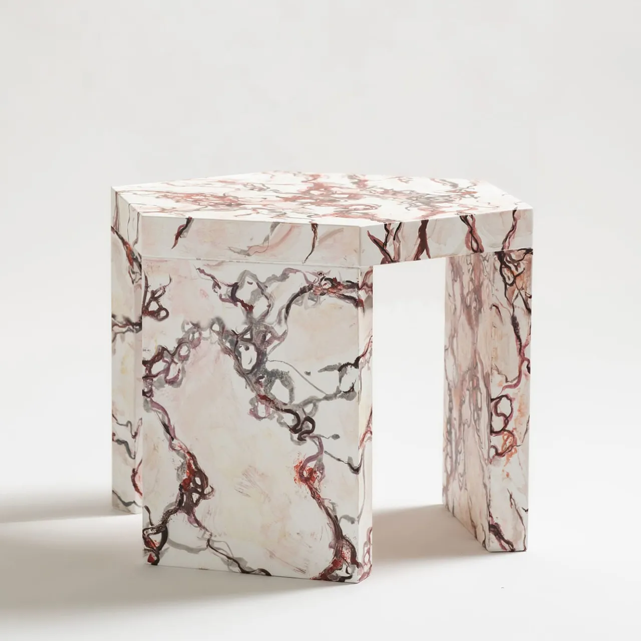 Ispirato al pregiato marmo italiano, questo tavolino da caffè è realizzato con cura attraverso la fusione di principi di design minimalista e antiche tradizioni artistiche. Con elementi compositi di 4 cm di spessore, questo tavolino modulare è solido e funzionale, con una struttura in legno rivestita di vernice catalizzata con solventi, una base in poliuretano e una finitura acrilica. La leggerezza e l’eleganza del tavolino, unite al suo design innovativo, si traducono in un pezzo d’arte di grande impatto.