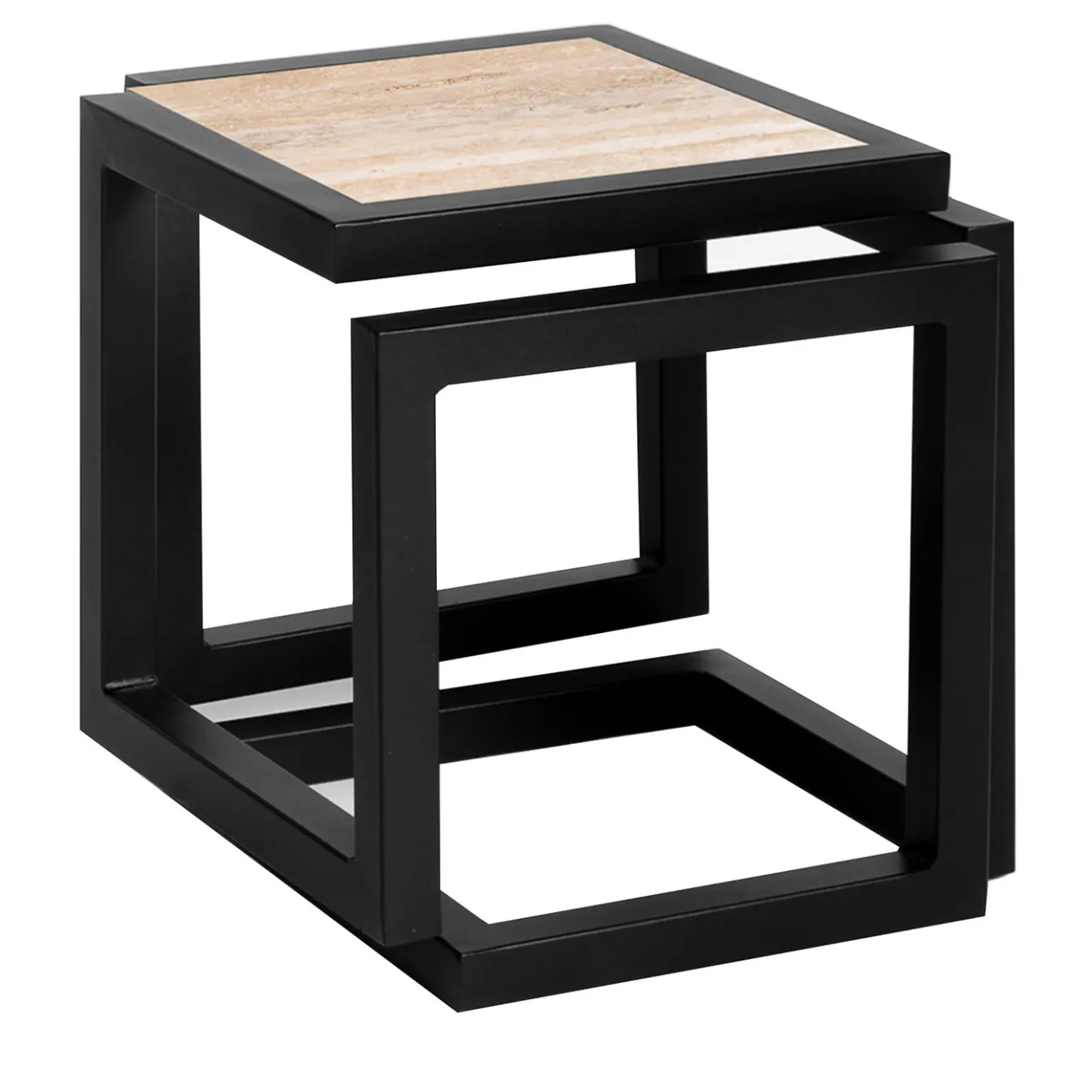 Un design scultoreo dal fascino sobrio ed essenziale, questo magnifico tavolino da caffè eleverà l’estetica di qualsiasi angolo di un interno contemporaneo. Realizzato a mano in marmo travertino di alta qualità, il piano quadrato è racchiuso in una struttura in ferro laccato nero che costituisce anche la base geometrica di appoggio. Personalizzabile nella finitura del metallo e nel tipo di marmo, chiedere al Concierge per le opzioni.
