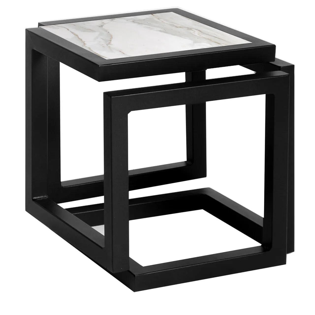 A forma di cubo decostruito e privo di sfaccettature laterali, questo tavolino unisce l’estro scultoreo alla funzionalità. Un pregiato piano quadrato in marmo statuario di Carrara è incastonato in una struttura audace e rigorosa, realizzata in ferro laccato nero e minuziosamente saldato a mano. La finitura metallica è disponibile anche in una tonalità dorata o grigia e sono disponibili altre varianti di marmo; per informazioni dettagliate su opzioni e prezzi, consultare il Concierge.