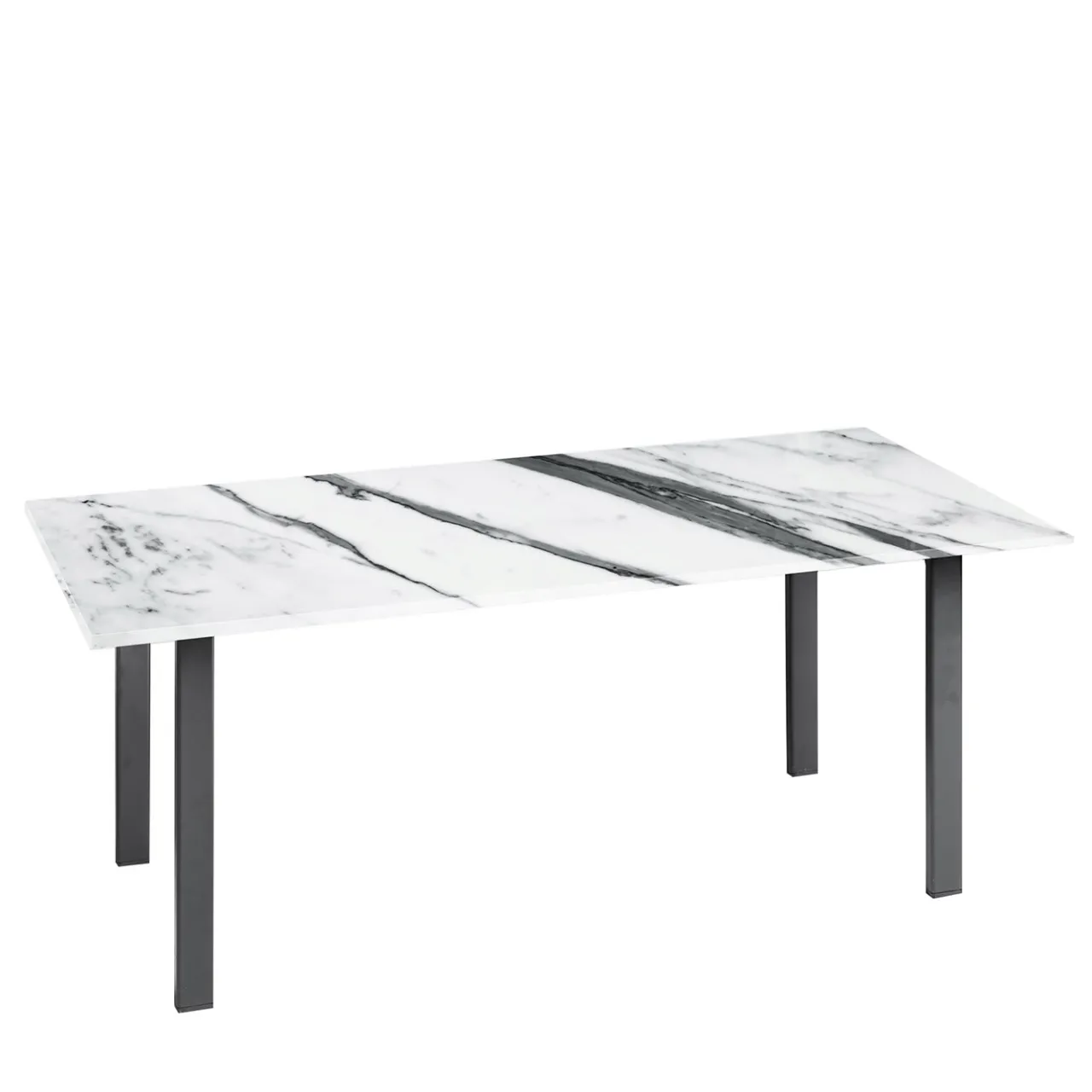 Integrazione impeccabile di interni contemporanei o minimalisti, dove spicca per la sua nuda eleganza e il suo rigore strutturale, questo tavolino è caratterizzato da un armonioso conflitto di materiali e tonalità. L’incantevole piano rettangolare in marmo statuario di Carrara poggia su una base minimalista di quattro gambe in ferro laccato grigio, la cui tonalità bilancia le venature uniche del marmo. Disponibile anche in ferro con finitura oro o nera e in marmi diversi su richiesta al Concierge.