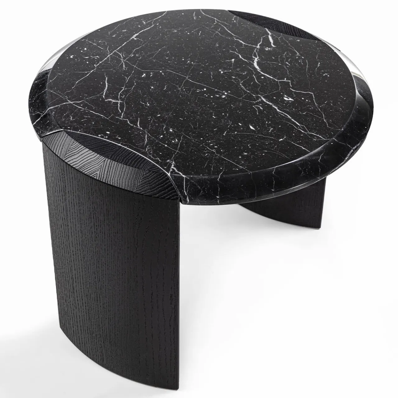 Dal nome di una poetica cittadina lacustre del Nord Italia, questo tavolino cattura lo sguardo con i suoi volumi slanciati e dinamici proposti in profonde sfumature cromatiche. Un particolare ed elegante incastro tra il pregiato piano in marmo di Marquinia e le gambe in frassino tagliato a mandorla caratterizza il design, che appartiene a una serie che conta più varianti affascinanti.