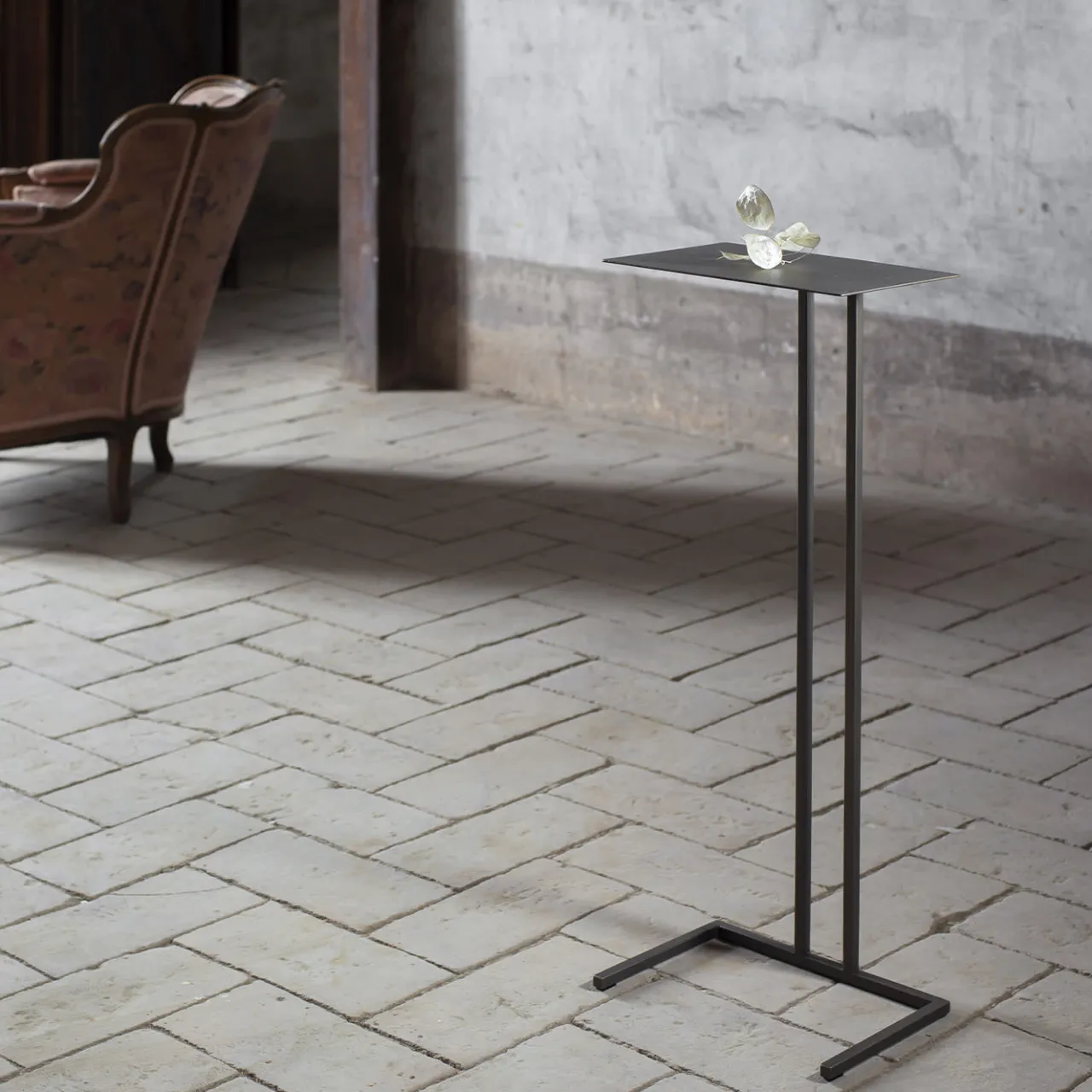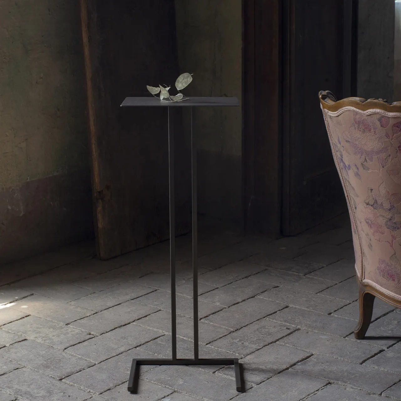 Eleganza senza tempo e carattere altamente funzionale si fondono in questo stupendo tavolino, un design leggero ed elegante che prende il nome dal fiume che scorre vicino al Castello di Montanaro, uno storico edificio medievale situato nella regione Piemonte, in Italia. Questo pezzo iconico può essere sistemato vicino a un divano, con la sua base che si incastra perfettamente in qualsiasi struttura. Dal design raffinato e minimalista, è realizzato a mano in metallo laccato marrone.