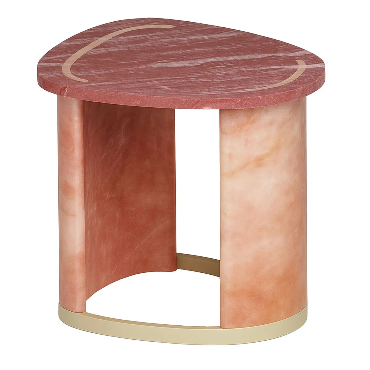 Questo tavolino di medie dimensioni presenta un distintivo piano a forma di pera in onice rosa, arricchito da dettagli curvi sottili. Il suo design incorpora linee morbide e armoniose e una base a tre pannelli che fonde tonalità calde, evocando un’eleganza naturale e un’estetica femminile raffinata. La base circolare aggiunge stabilità mantenendo la forma fluida del tavolo, rendendolo un pezzo d’accento sorprendente e funzionale per interni contemporanei. Parte della collezione Somnium.