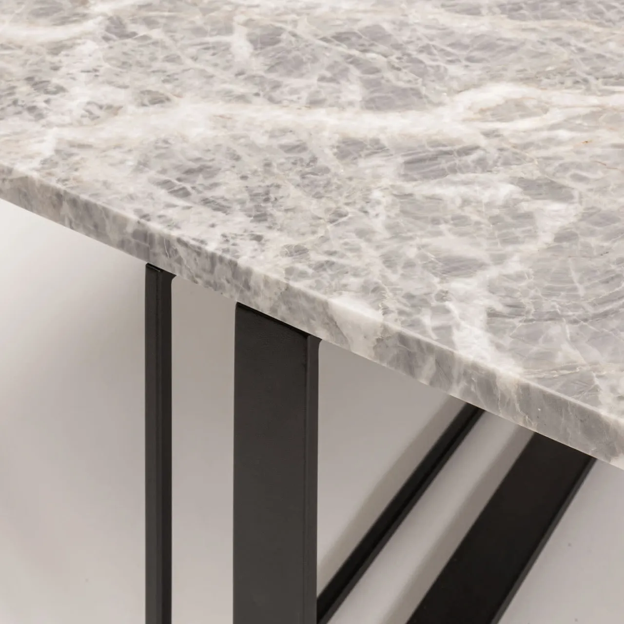 Questo tavolino, che prende il nome dal latino “paths”, si distingue per la sua estetica scultorea che è un’ode al viaggio e ai percorsi che la vita traccia. Le gambe angolari intersecate in ferro nero sono costituite da elementi paralleli che simboleggiano i binari della vita, una struttura intrisa di poesia che sostiene il maestoso piano quadrato in marmo pregiato dove le sfumature dell’azzurro e del rosa si combinano in modo unico.