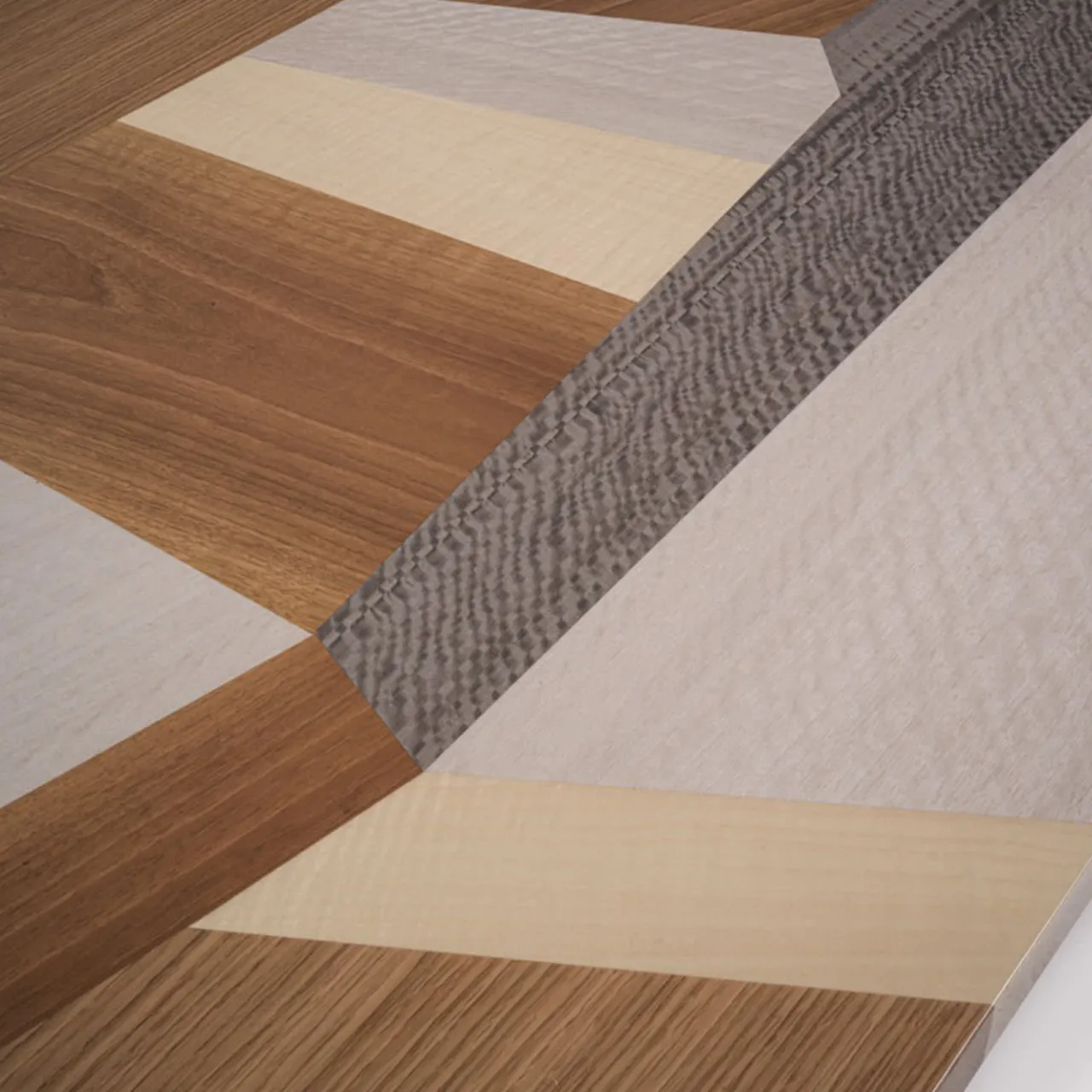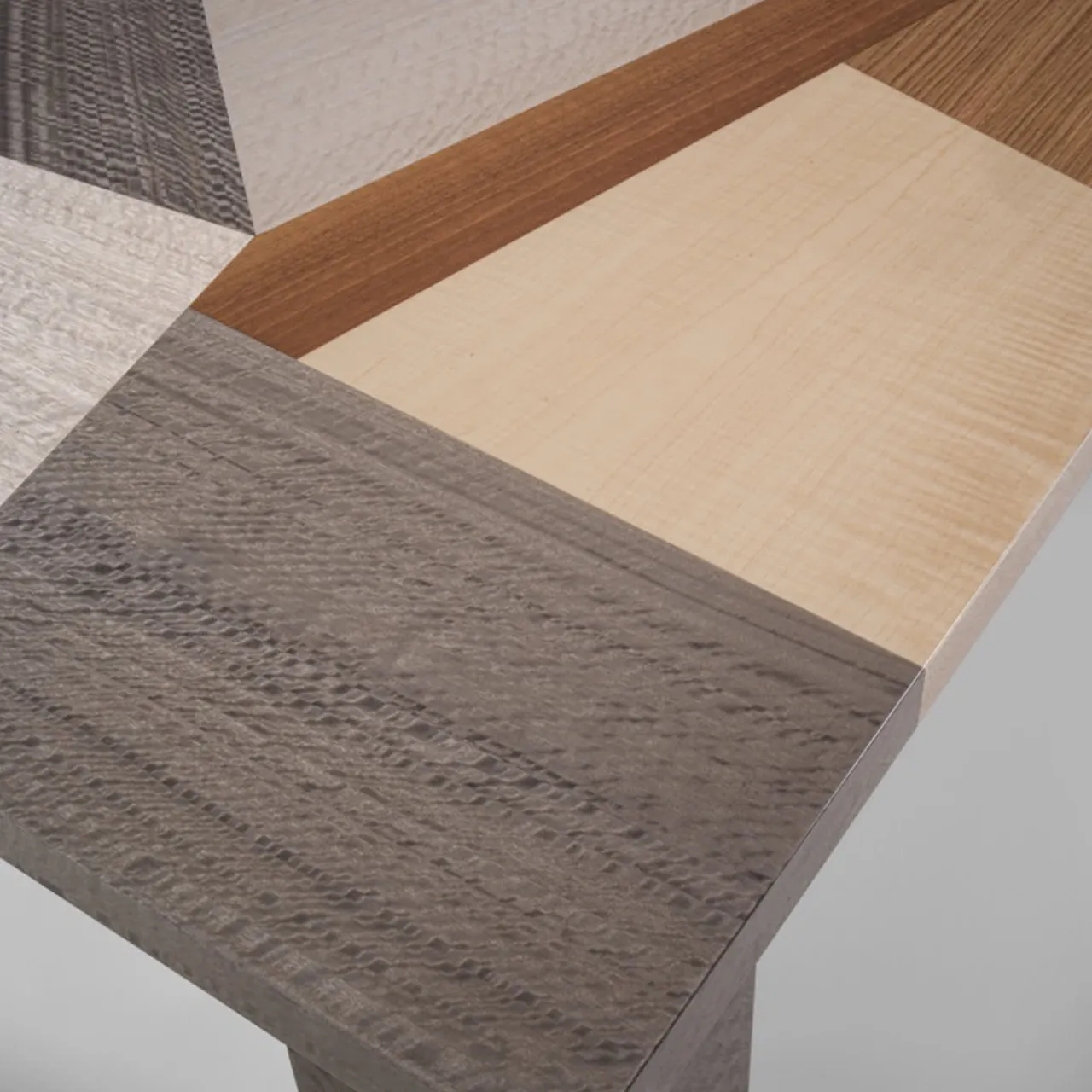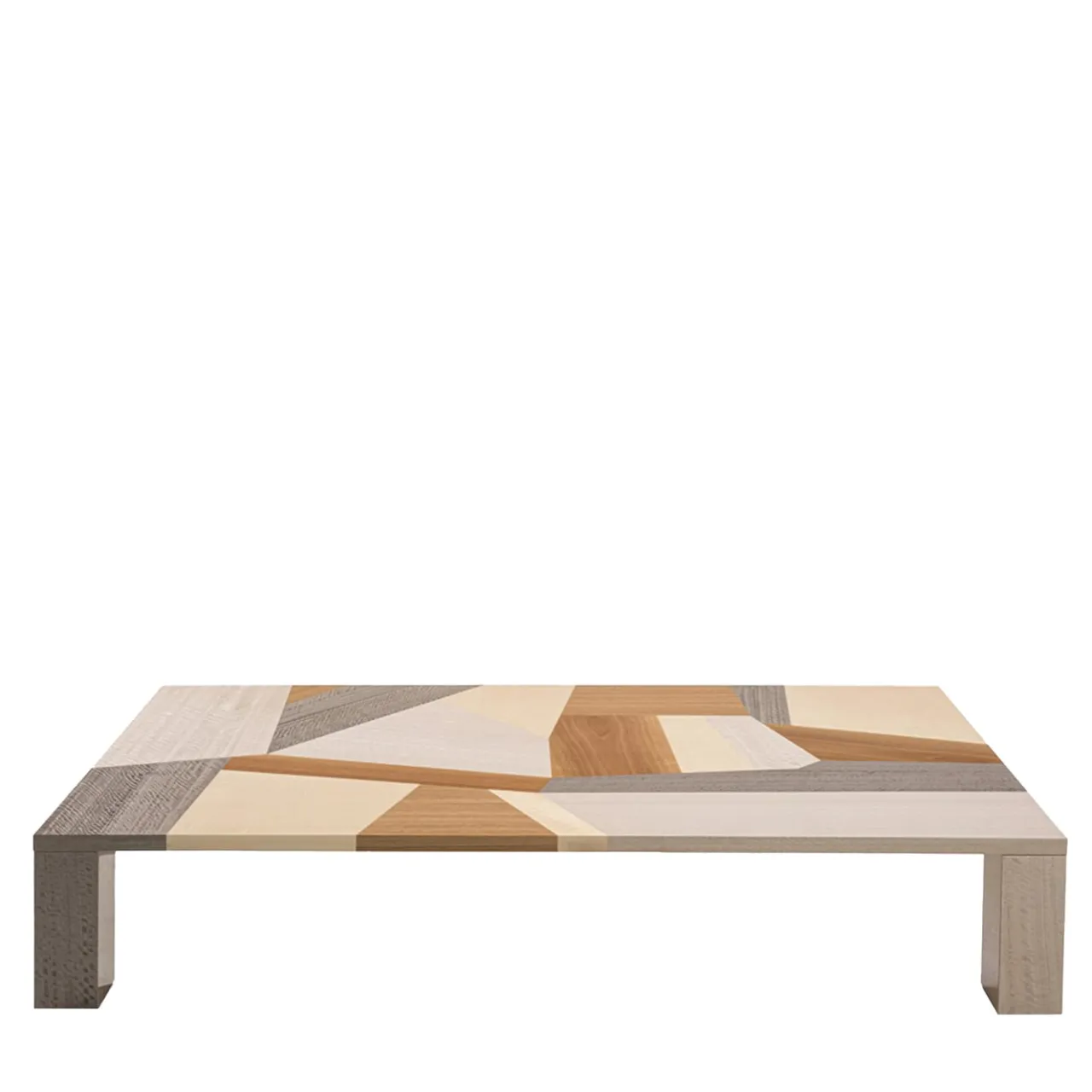 Una sapiente disposizione di intarsi in legno vibrante in tonalità contrastanti che mescolano sfumature fredde, neutre e calde conferisce a questo tavolino un superbo dinamismo, enfatizzato dal taglio netto e irregolare degli intarsi. La silhouette estremamente minimalista fa da contraltare al design audace, dove la natura – con le sue venature naturali – incontra un’artigianalità senza pari. Il pezzo è arricchito da una finitura lucida.