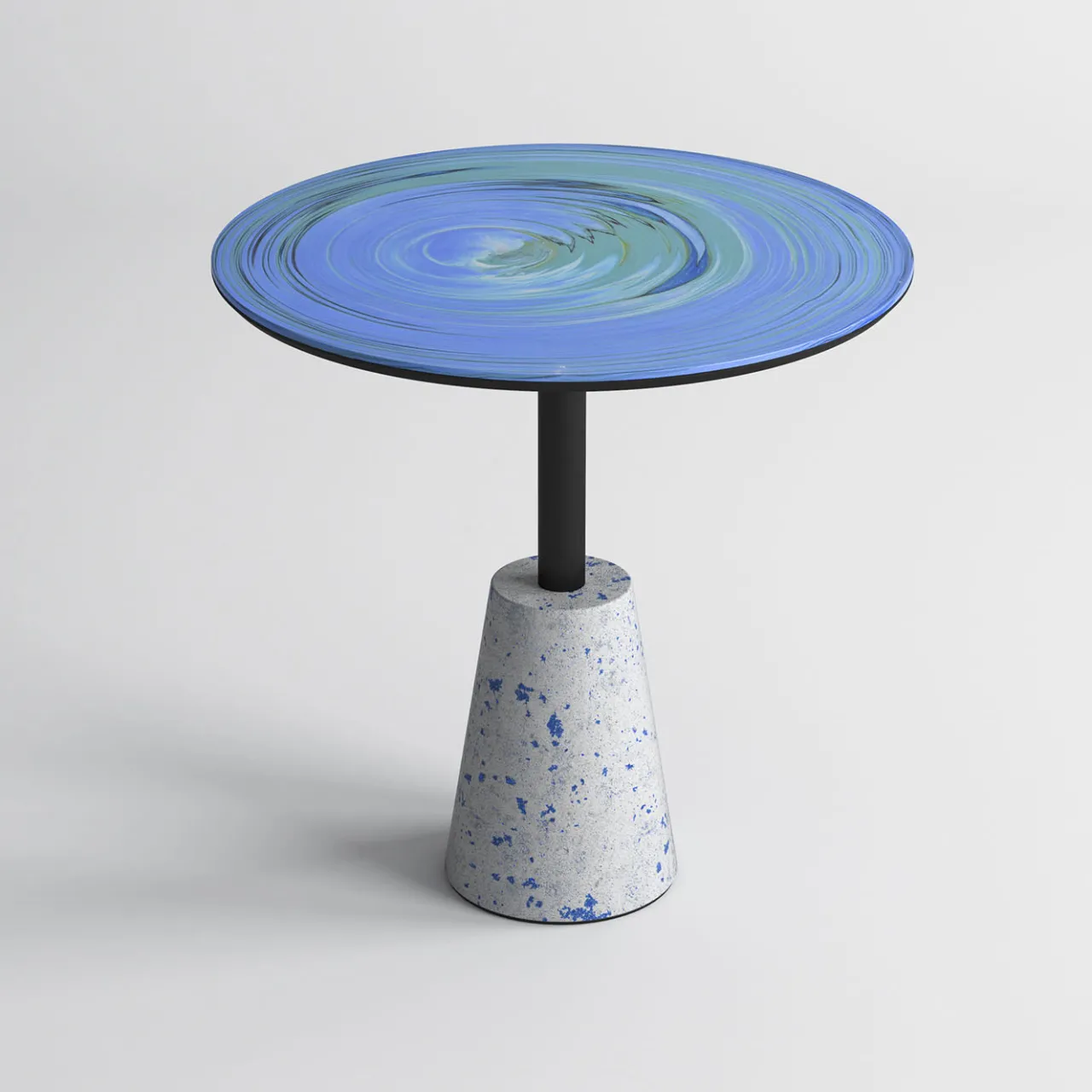 Ipnotizzante e suggestivo, questo tavolino artigianale è un pezzo unico che fa parte della collezione Astraliti di design ispirati alla contemplazione dell’universo. Mescolando vivaci tonalità di verde e azzurro, si può ammirare un suggestivo vortice sul piano circolare Fenix, che poggia su una robusta base composta da uno stelo in metallo nero lucido e da un tronco di cono in cemento ravvivato da un disegno azzurro. Abilmente lavorato a mano, ogni pezzo è unico.
