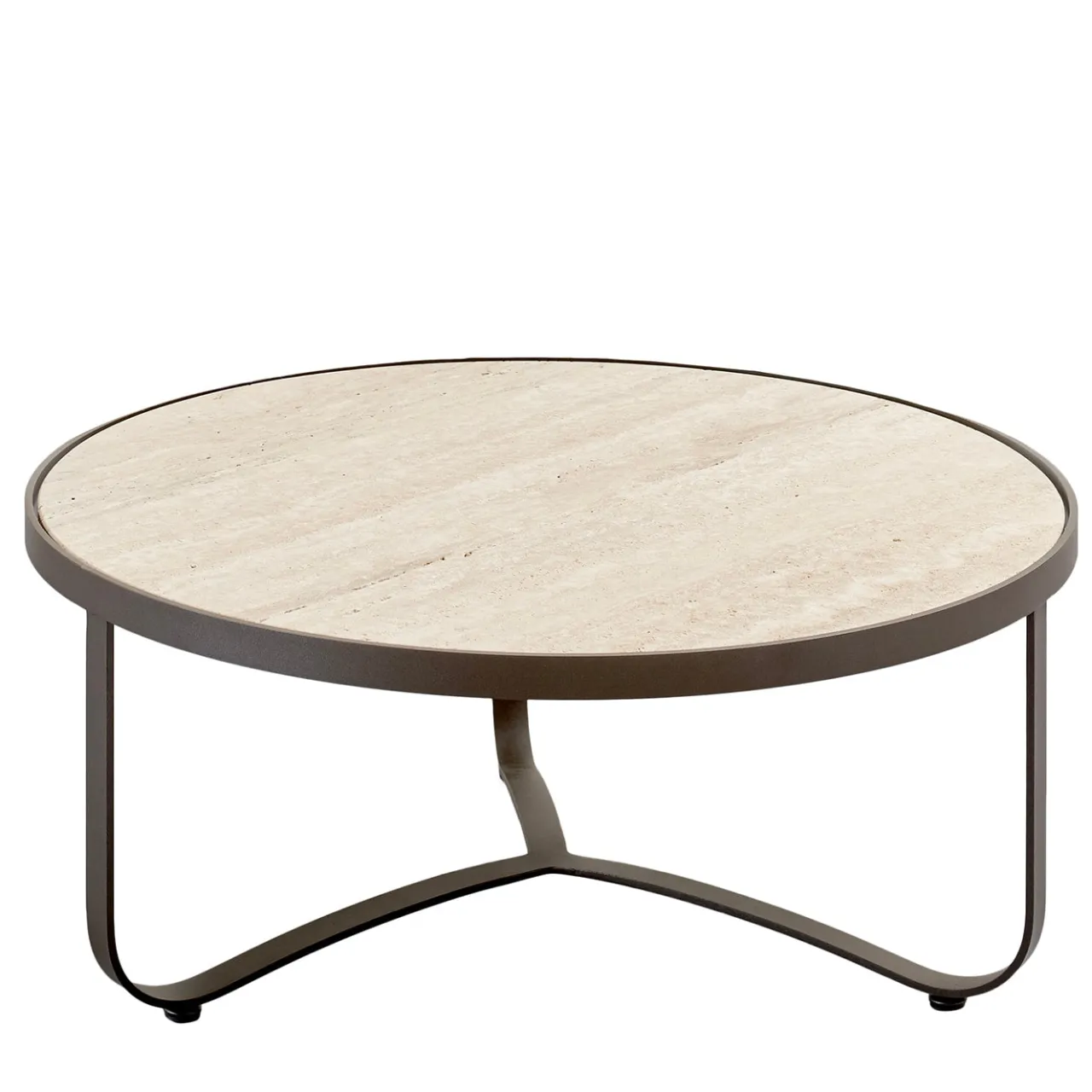Un prezioso disco di travertino a finitura naturale che completa una struttura metallica dalle linee fluide descrive il look moderno di questo tavolino, pezzo originale disegnato da Studio 63 per la collezione Amalfi. Verniciata a polvere in grigio manganese, la sinuosa struttura in acciaio inox presenta un design arioso, quasi scultoreo, che si adatta perfettamente a terrazze o patii in stile contemporaneo.
