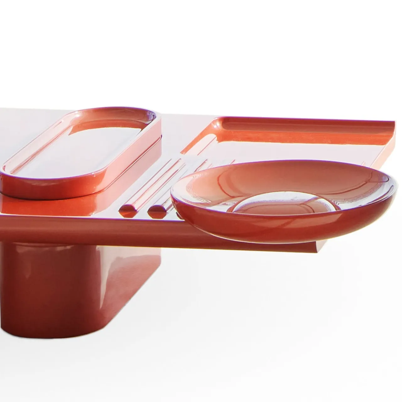 Ispirato agli stampi da fonderia in legno – manufatti caratterizzati da un insieme di fori, arrotondamenti, linee rigide e protuberanze – questo tavolino appartiene a una serie di due pezzi disegnati da Martinelli-Venezia. Laccato in rosso, è interamente realizzato a mano in legno e presenta pratici vassoi svuota tasche e dettagli suggestivi. Per ulteriori informazioni, consultare il Concierge.