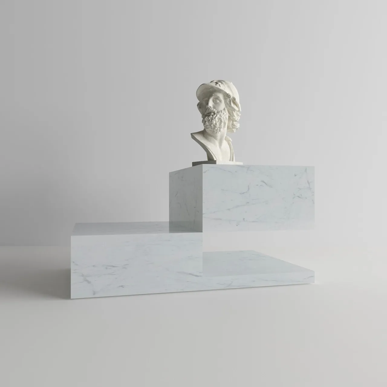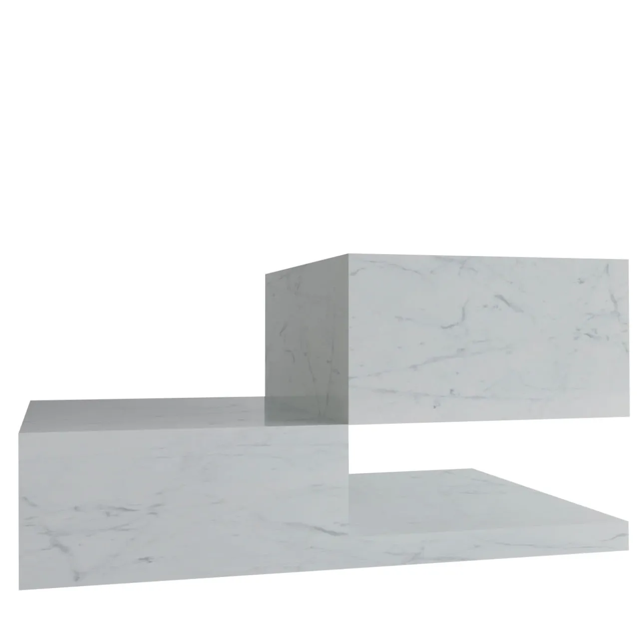 Chiamato in modo giocoso per contrastare la sua ingannevole instabilità, questo tavolino deve il suo fascino scultoreo a una sapiente disposizione di volumi geometrici puri. La composizione risultante trova dinamismo nella sua estetica asimmetrica e lusso nella sua struttura in marmo di Carrara. La controparte in marmo di Visone è disponibile anche nel catalogo Artemest.