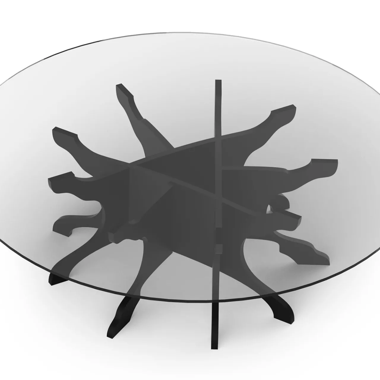 Tavolino rotondo dal design moderno e raffinato. L’originale base è una vera e propria scultura, realizzata in multistrato di betulla stampato e verniciato in nero opaco. L’elegante piano rotondo, del diametro di 100 cm, è in vetro temperato extrachiaro. Il tavolo Tale è disponibile anche con piano quadrato e con base in betulla naturale.