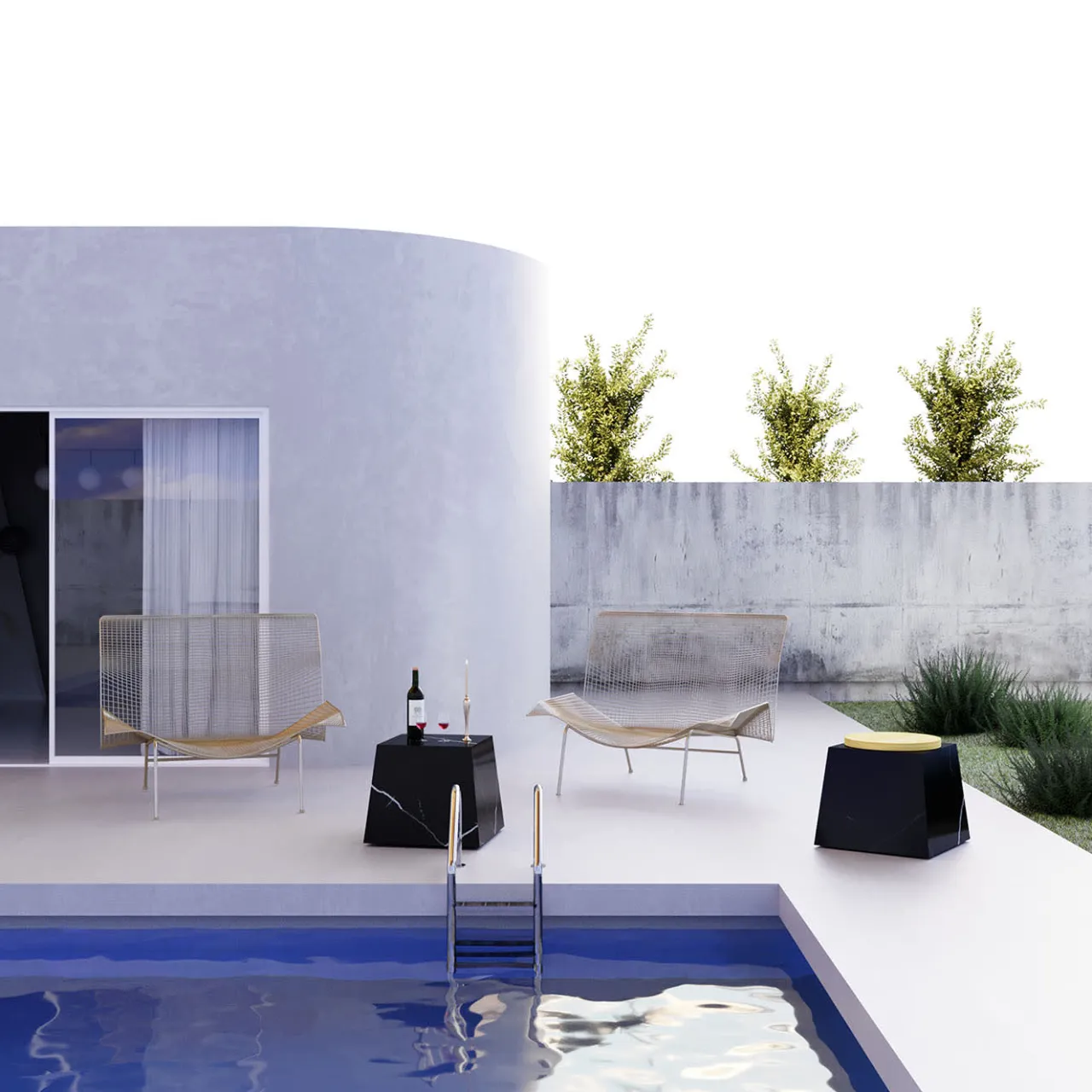 Lusso e minimalismo si incontrano in questo superbo tavolo monoblocco Sid&sign, concepito come sintesi di rigore geometrico e tracciati naturali. Forme archetipiche contraddistinguono la sua silhouette in marmo Marquinia, decorata solo grazie alla presenza intrinseca di imprevedibili venature di luce che emergono dal tono nero profondo della pietra. Può essere facilmente trasferita da ambienti interni a esterni.