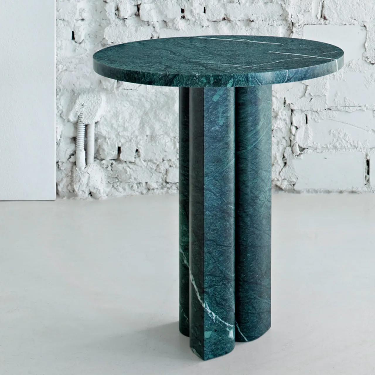 La bellezza del tavolino Verde Alpi risiede nella pietra naturale. Disegnato da Michael Anastassiades con l’intento di evidenziare l’opulenza del marmo, fa parte della sua collezione Love Me, Love Me Not. La scelta di una finitura opaca ha conferito un tocco più contemporaneo alla pietra, mettendo in risalto le sue qualità specifiche attraverso questo processo sommesso.