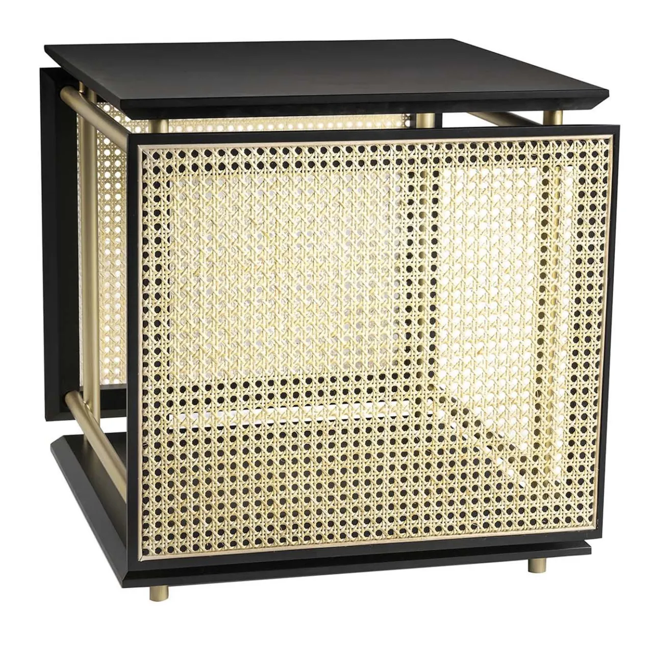 Parte di una serie unica di tavoli per il soggiorno che possono essere esposti da soli o combinati per un effetto dinamico, questo tavolino fa parte della collezione Weiner Box disegnata nel 2018 da Cristian Mohaded. Onorando il patrimonio iconico dei mobili Thonet, questo tavolino vanta lati in paglia viennese che lasciano intravedere la struttura interna del pezzo in metallo e legno laccato.