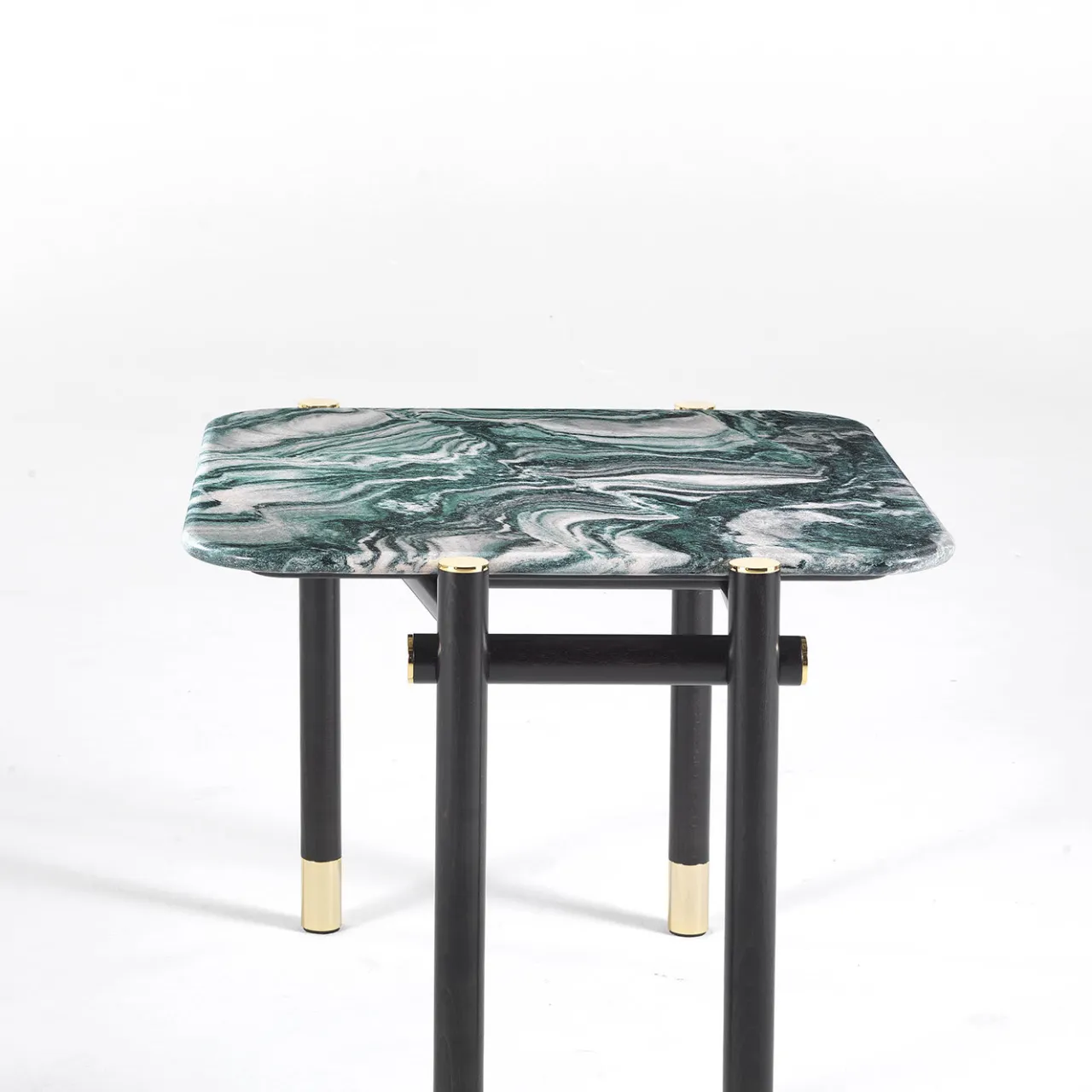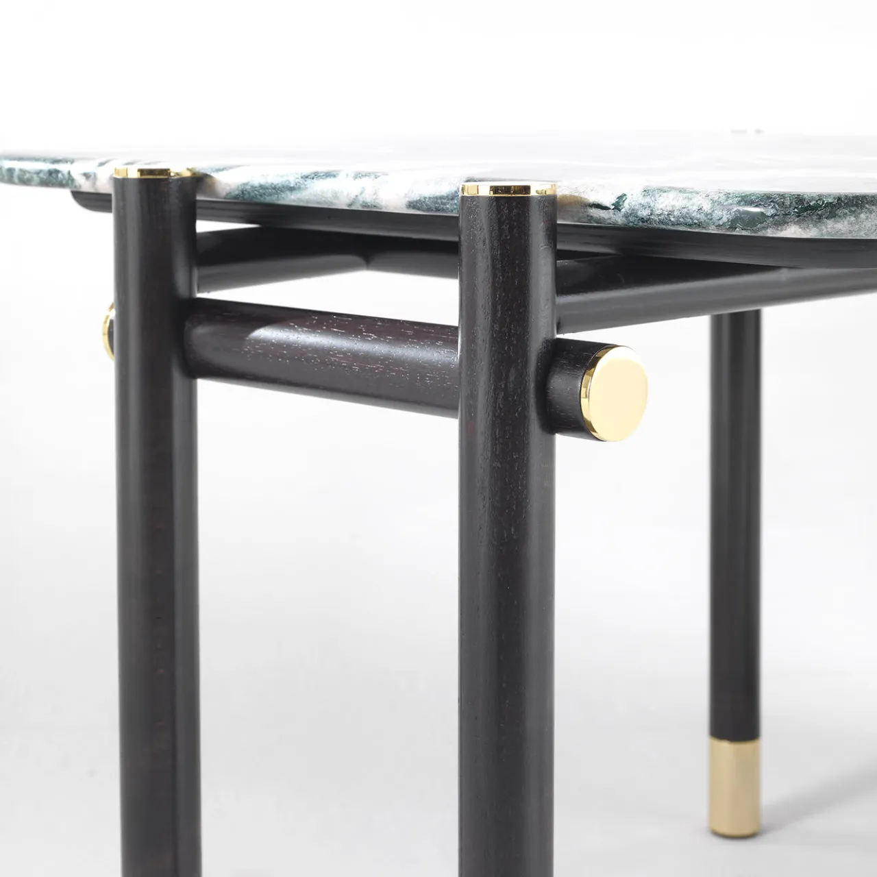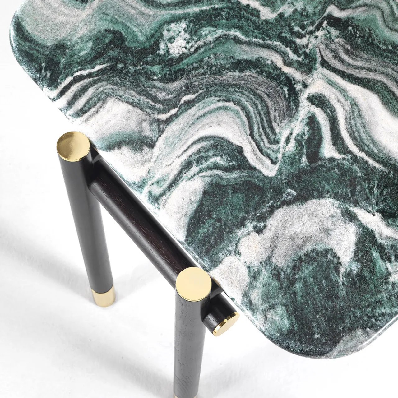 Un tavolino dal fascino prezioso, caratterizzato da un particolare piano in marmo pregiato impreziosito da dettagli raffinati come i puntali in ottone bronzato del basamento. Il tavolino è la perfetta espressione della straordinaria artigianalità che caratterizza l’intera collezione. Struttura in legno tinto wengè scuro con puntali in ottone lucido. Piano in marmo cat. A Verde Polare. Il pezzo può essere personalizzato, si prega di consultare il Concierge per le opzioni.