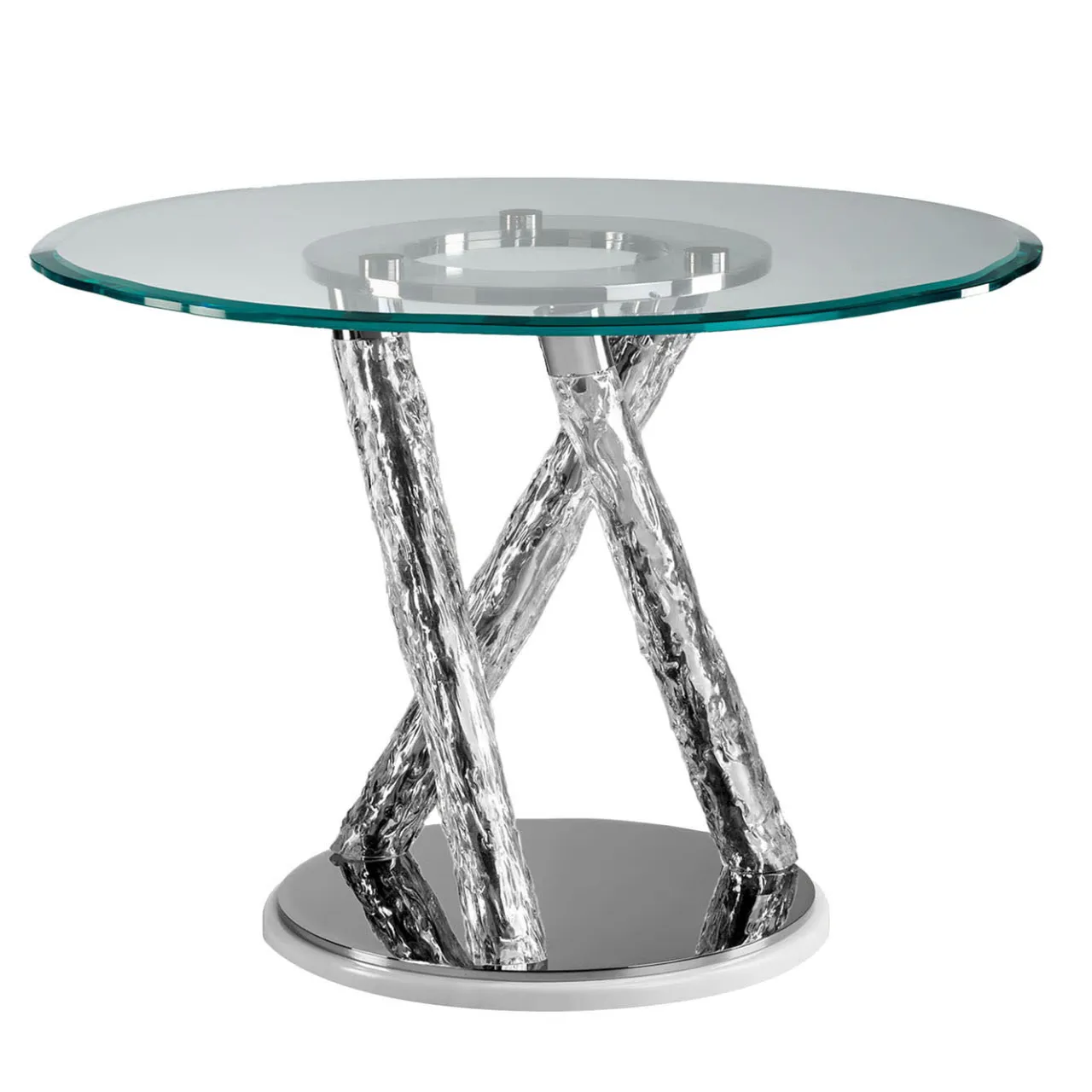 Questo tavolino scultoreo è una maestria del design, che fonde comfort ed eleganza in un’armonia sublime. Il piano circolare in vetro è ancorato da un’unica colonna composta da tre aste metalliche che si attorcigliano e si intersecano; la loro disposizione e il loro aspetto strutturato emanano un dinamismo ipnotico, esaltato dai materiali eleganti e dai dettagli minimali. Un’aggiunta straordinaria agli arredi moderni. Per maggiori dettagli, contattare il Concierge.