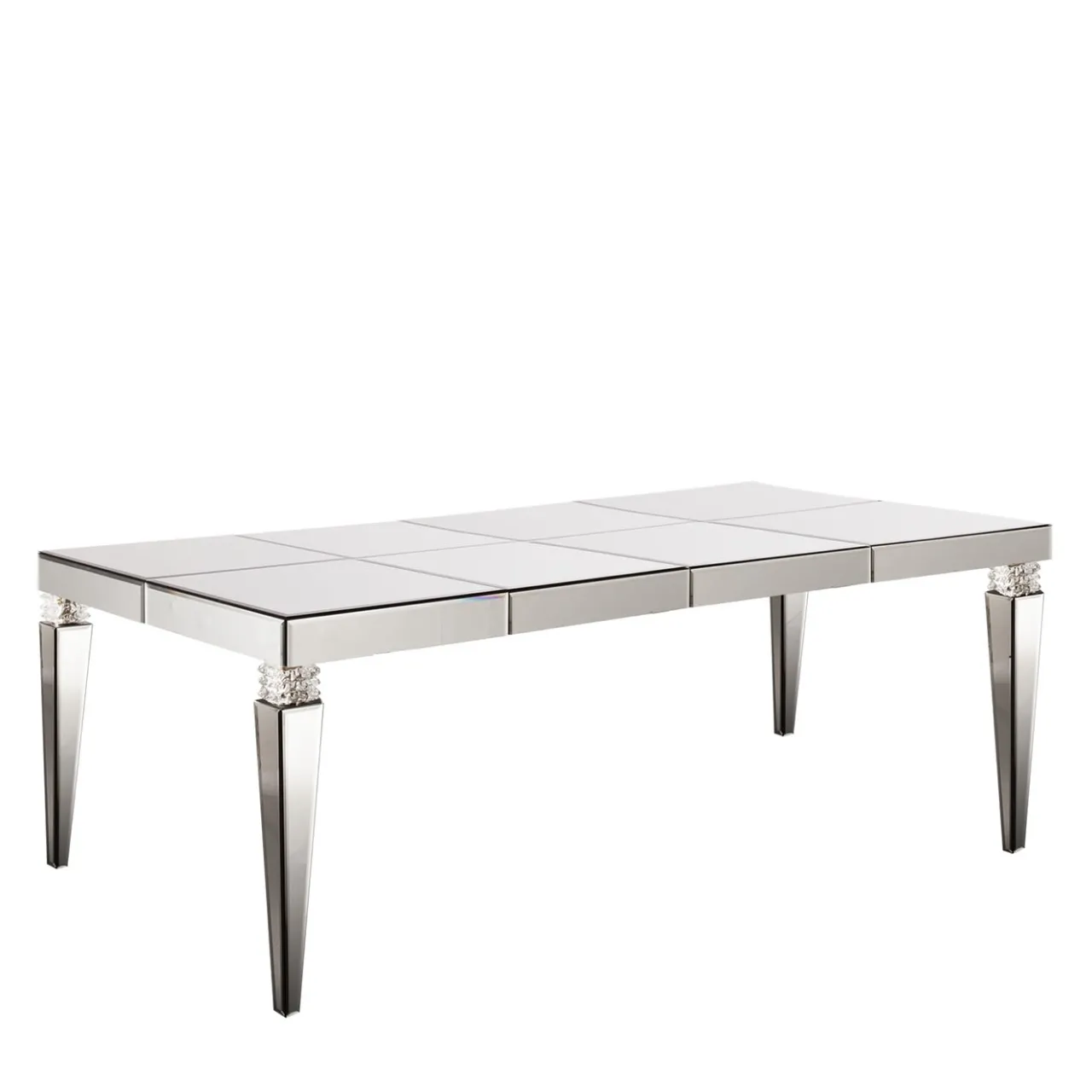 Lussuosamente rivestito di prezioso vetro specchiato, questo tavolo dalle linee eleganti è un’elegante aggiunta alle sale da pranzo contemporanee. Oltre all’impressionante profondità visiva che offre grazie all’ampia riflettività, tra il piano e le gambe affusolate e sfaccettate si interpongono inserti scolpiti in pregiato vetro di Murano, per suggellare l’allure gioiello del design. Una raffinata consolle è disponibile nel catalogo Artemest.
