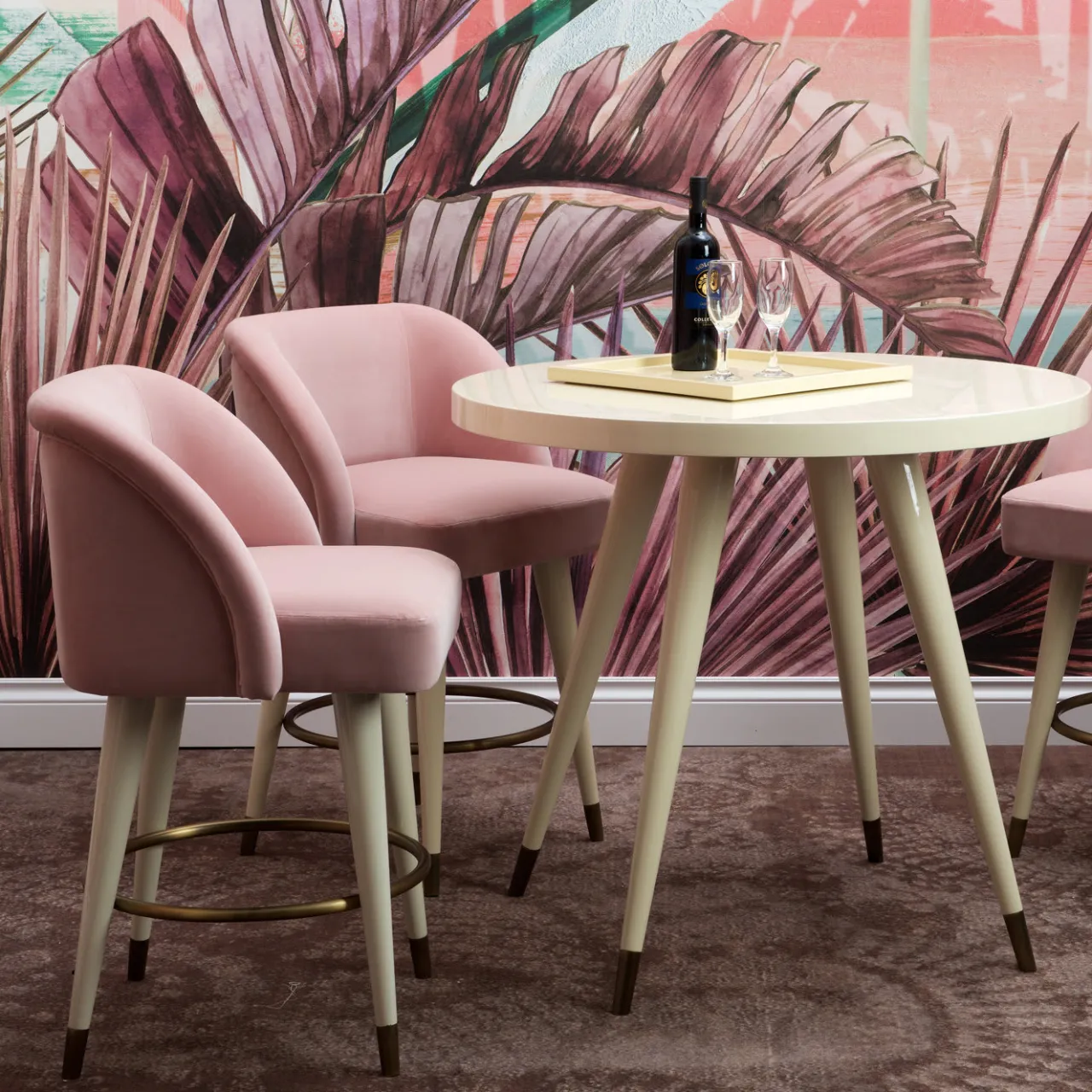 Complemento di grande effetto per una casa moderna, questo tavolo da bar fa parte della linea più prestigiosa di DOM Edizioni, la Collezione Andrea, disegnata dal direttore creativo Domenico Mula. Combinando colori tenui con il fascino dello stile di metà secolo, questo tavolo da bar si abbina al meglio con la sedia da bar Pauline o con la sedia da bar Isidoro e può essere utilizzato per decorare un angolo colazione unico. La sua struttura è in legno laccato lucido avorio e le gambe inclinate con punte in metallo bronzato.