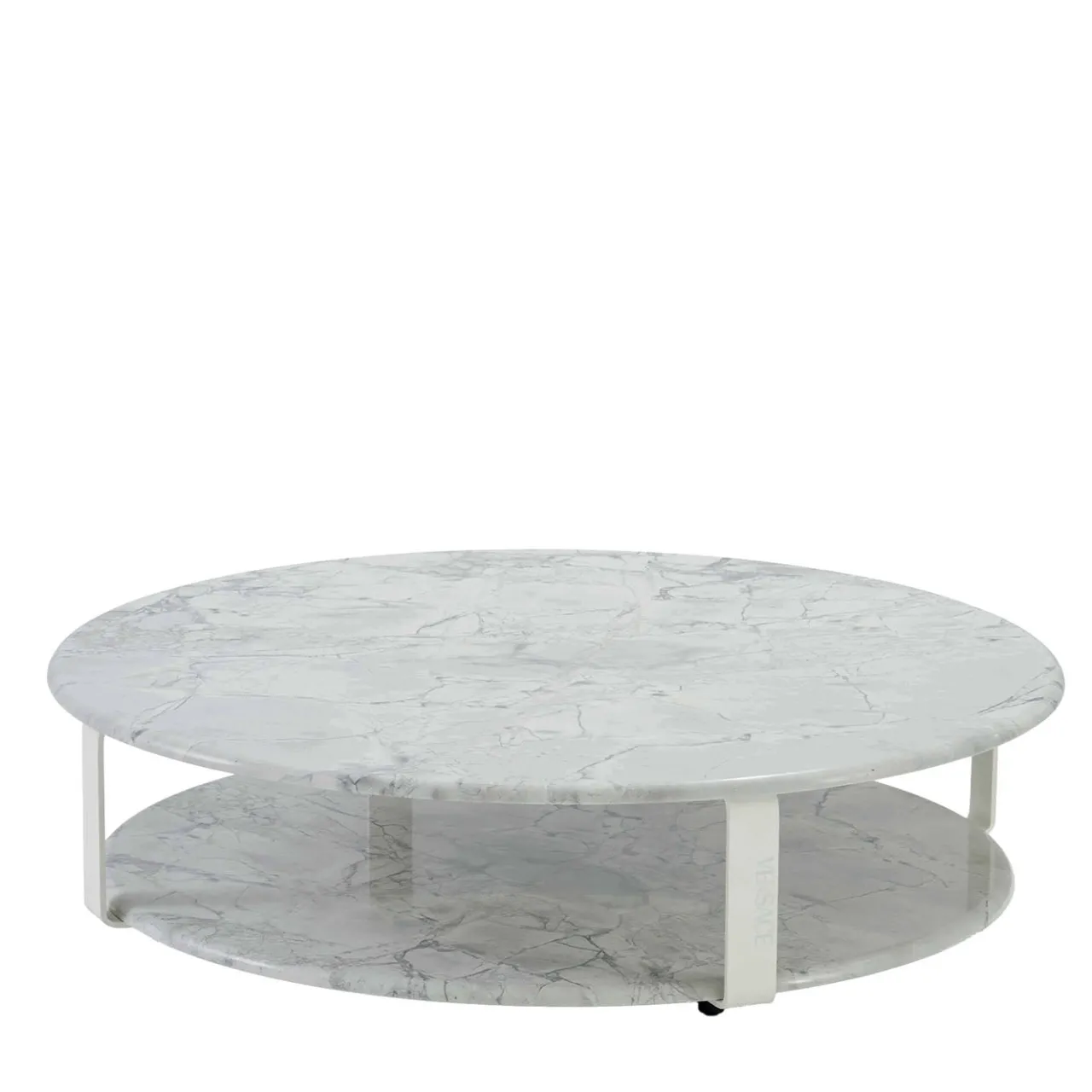 Tavolo da caffè per esterni La Greca rotondo grande in marmo Super White*Versace Home Clearance