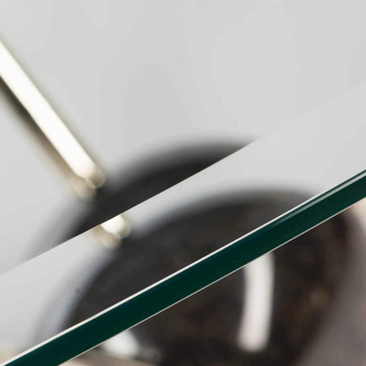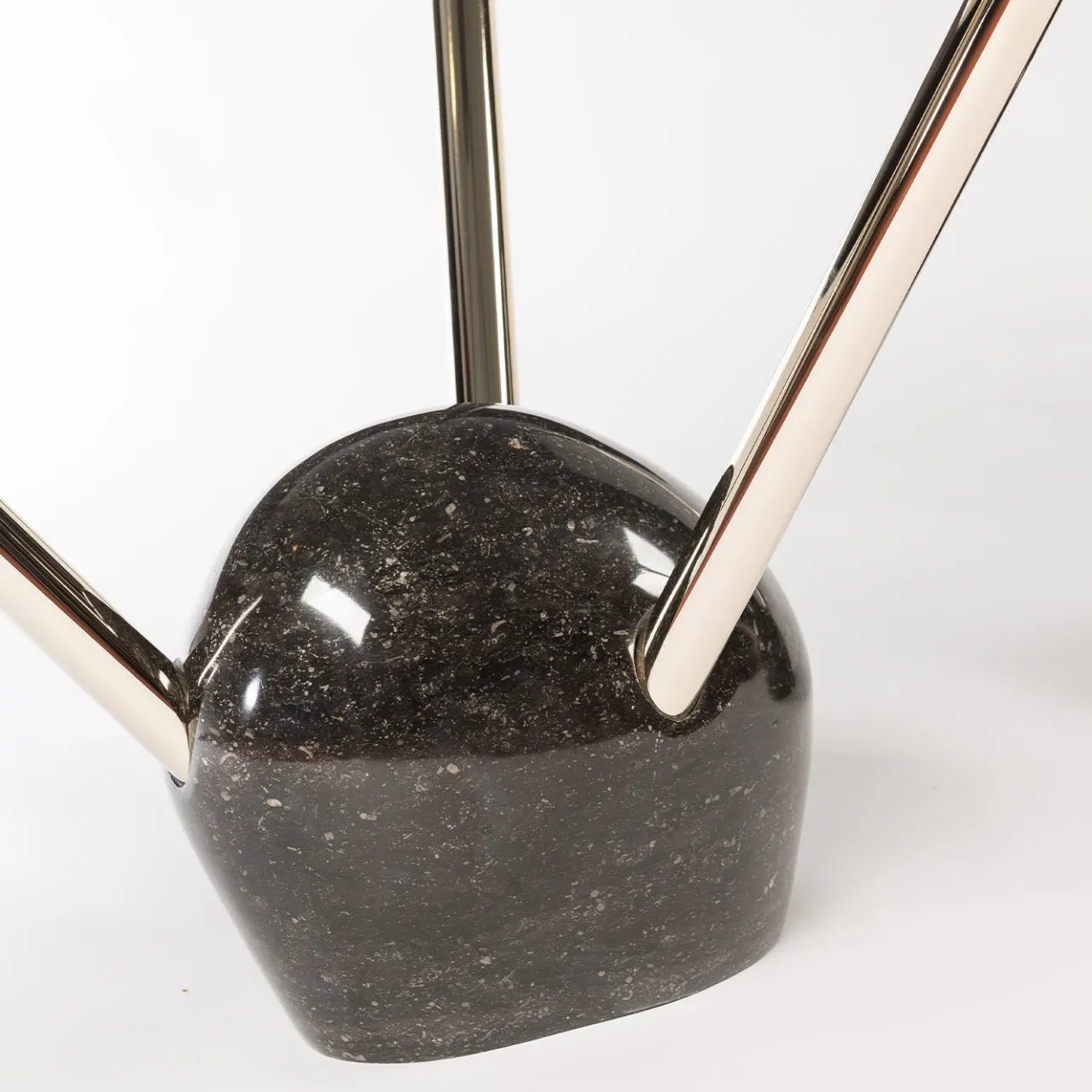 Questo superbo tavolo da pranzo è moderno e sofisticato e si abbina particolarmente bene a un arredamento contemporaneo, grazie al piano in vetro temperato di 4 mm di spessore e alla finitura extrachiara. Il piano è di forma ovale e le sue curve delicate completano la base in marmo Pierre Bleue con bracci in metallo galvanizzato rifiniti in oro 24k. Disegnato per VG da Giorgio Ragazzini, questo pezzo si ispira alla natura e alla sua interazione con la tecnologia e lo spirito umano.