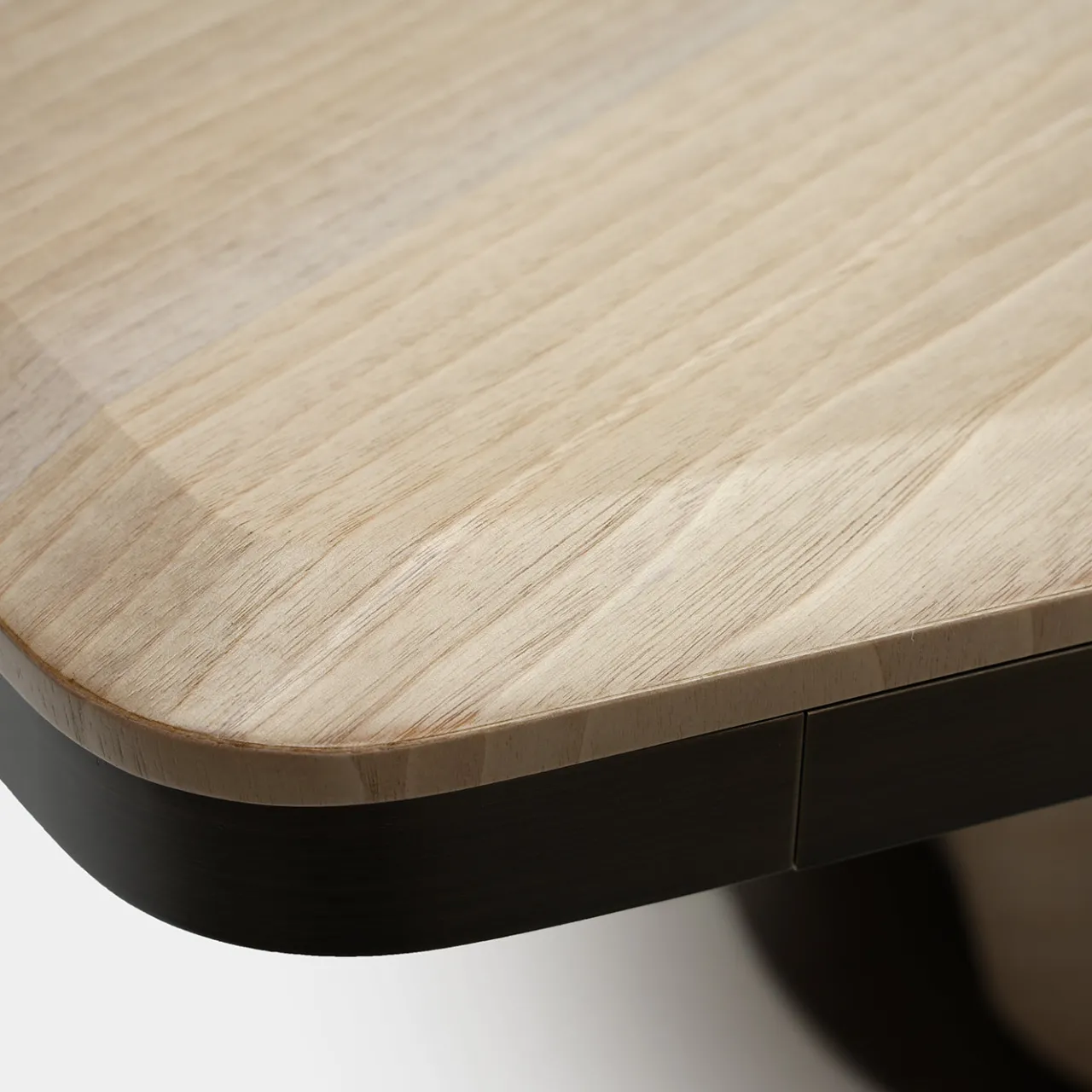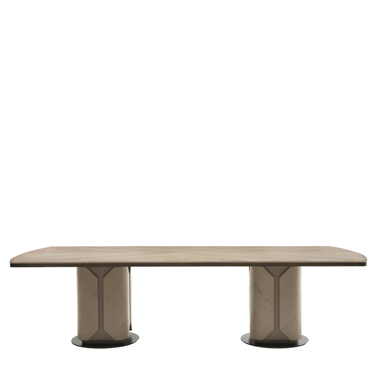 Una sapiente combinazione di materiali pregiati e finiture raffinate conferisce a questo tavolo da pranzo un fascino sofisticato. Maestoso nei volumi generosi quanto delicato nelle finiture, sfoggia un design ricco che rifiuta spigolosità nette e si distingue per la sapiente combinazione di preziosa impiallacciatura di noce canaletto abbinata a laccatura grigio chiaro. Eleganti dettagli in bronzo spazzolato sigillano il pezzo.