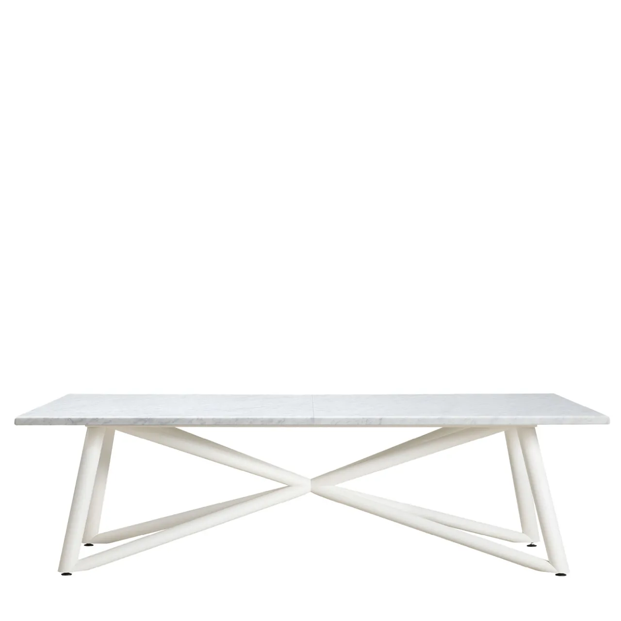 Tavolo da pranzo esterno rettangolare Larte 260 in marmo bianco carrara e acciaio bianco*Veltha Outdoor Stone Design Outlet