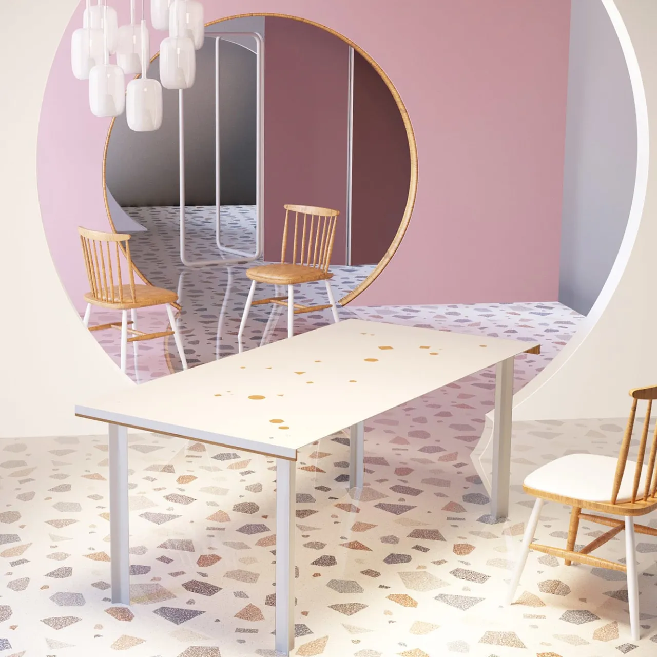 Design originale, produzione di alto artigianato, assolutamente made in Italy. Il ferro si assottiglia, la combinazione di pieni e vuoti e il dialogo tra i materiali si esaltano, i dettagli assumono rilevanza. Le forme geometriche delle forature sul piano del tavolo sono decorative e allo stesso tempo funzionali. Gli inserti in legno di quercia impreziosiscono l’oggetto con un design elegante e contemporaneo. La laccatura bianca lucida conferisce luminosità e un tocco di raffinatezza in più.