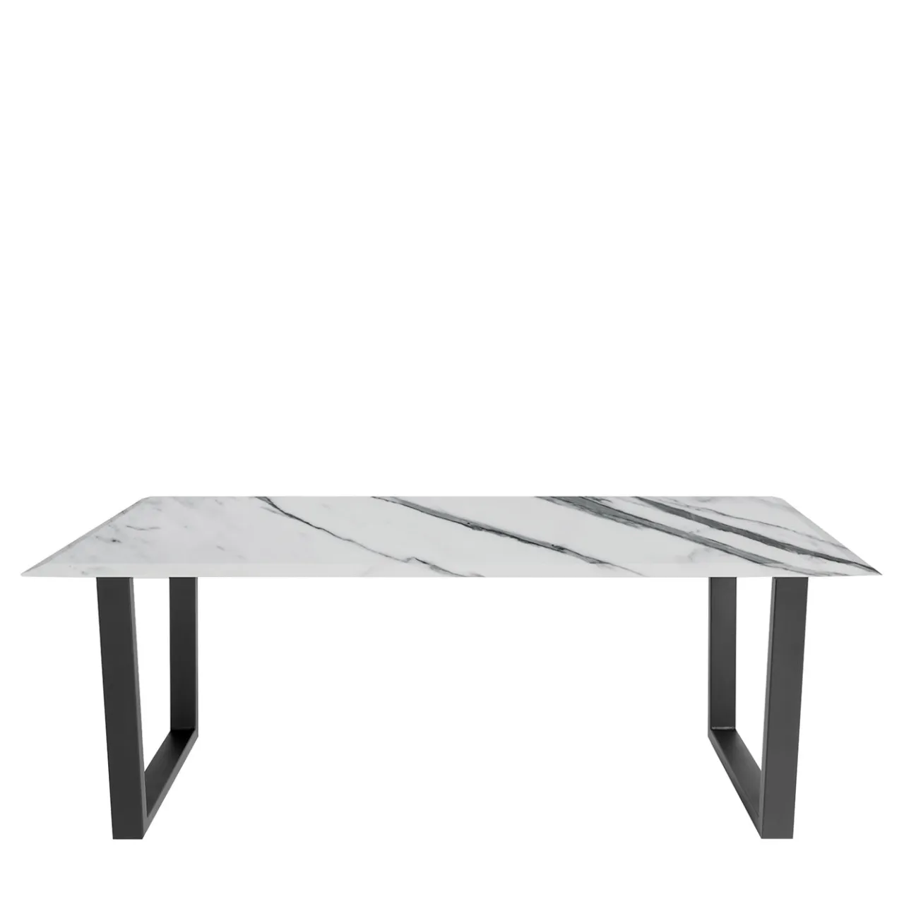Ideale per completare un ambiente raffinato di ispirazione contemporanea, questo raffinato tavolo da pranzo è caratterizzato da un profilo rigoroso con robuste gambe in ferro laccato grigio collegate in coppia con una barra orizzontale che sostiene il piano liscio realizzato artigianalmente in marmo di Carrara di prima qualità. Il marmo presenta singolari venature che ne attestano l’intrinseca bellezza naturale. Il piano può essere richiesto in diversi marmi e le gambe sono disponibili anche in nero o oro su richiesta al Concierge.