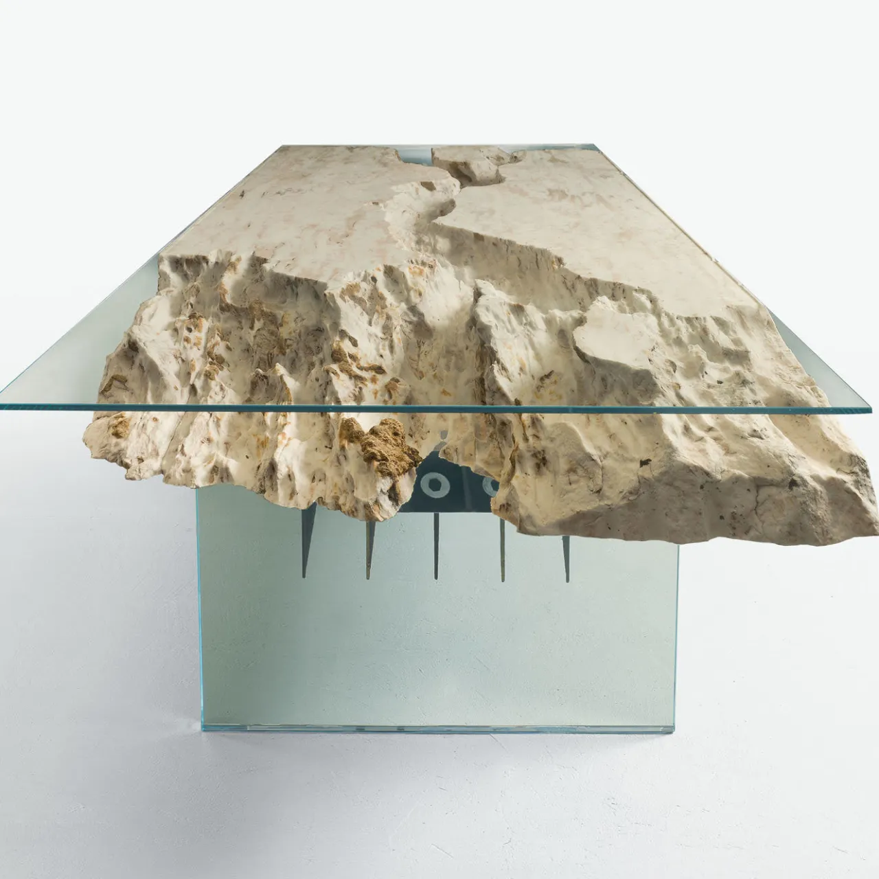 Questo sorprendente oggetto di arredamento funzionale infonderà un’eleganza eclettica in uno spazio abitativo moderno. Realizzato con i migliori materiali, questo tavolino ha una base in cristallo che sostiene un ripiano orizzontale in metallo alto 40 cm e lungo 90 cm. Su di esso si trova un superbo pezzo di marmo Rosa Portogallo ricoperto da uno strato di cristallo per proteggere la sua texture unica. Disegnato da Wind and Water. Quest’opera d’arte aggiungerà una texture unica a un interno elegante.