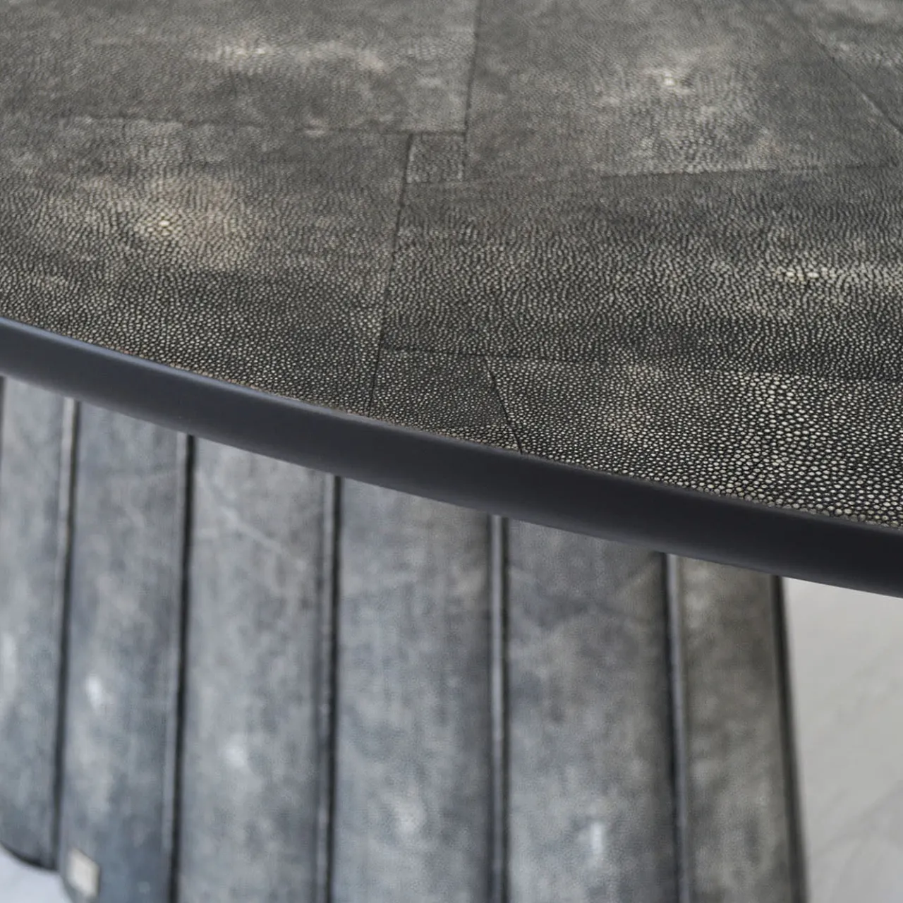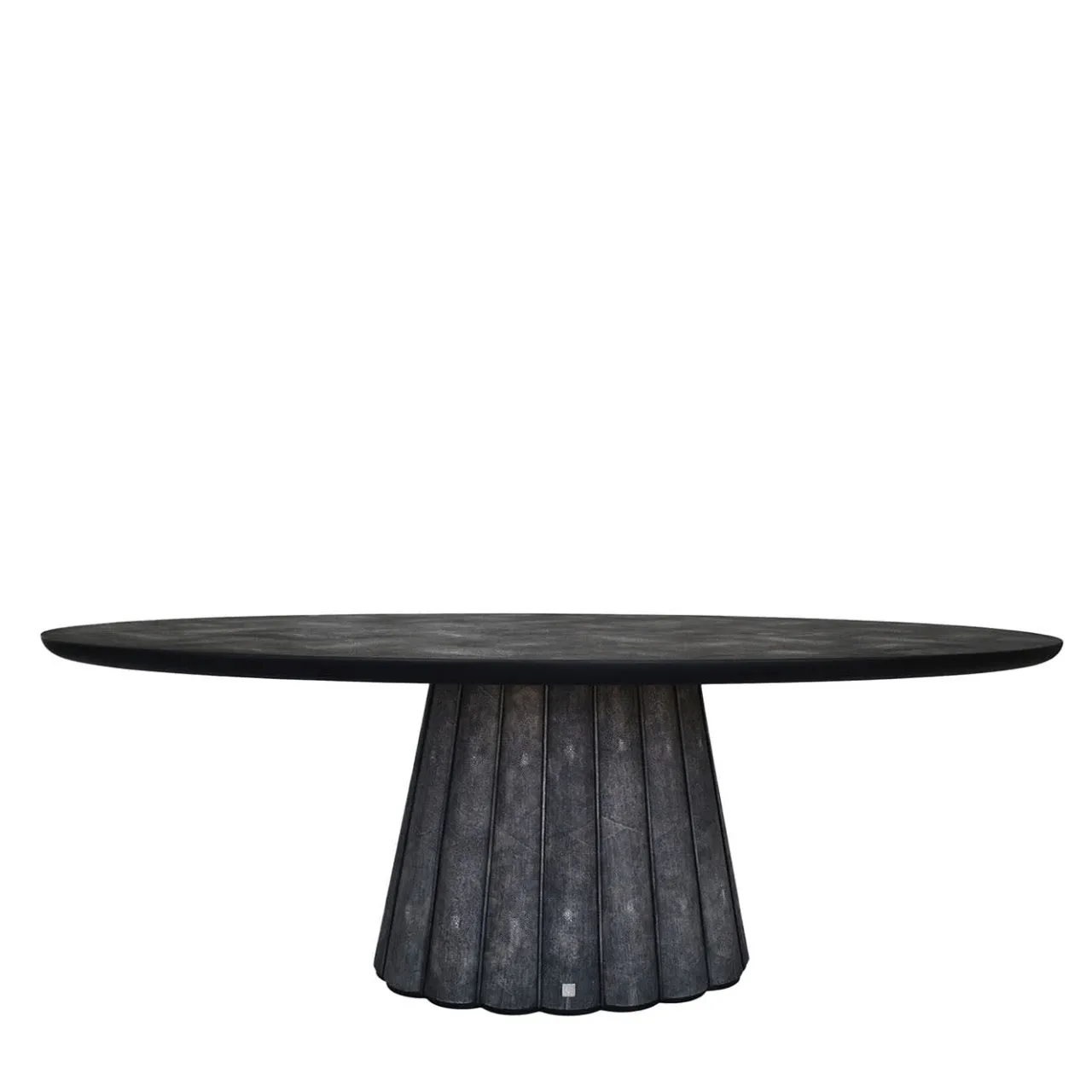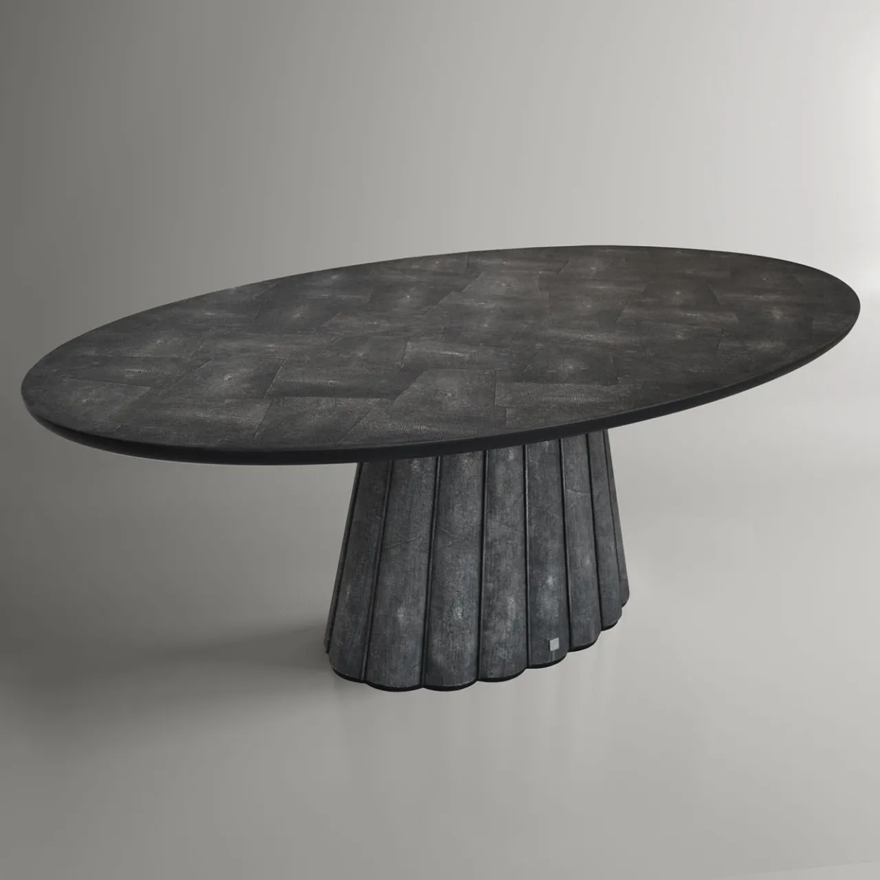 Un pezzo unico in cui l’esperienza ebanistica incontra l’eleganza sartoriale, questo tavolo da pranzo ovale – realizzato in legno e rivestito con un lussuoso effetto pelle Galuchat – è in grado di elevare qualsiasi pasto. Le sottili aste accentuano la texture smerlata della base, che contrasta con la perfetta morbidezza del piano ovale. Vi invitiamo a esplorare l’ampia gamma di colori personalizzabili con il Concierge.