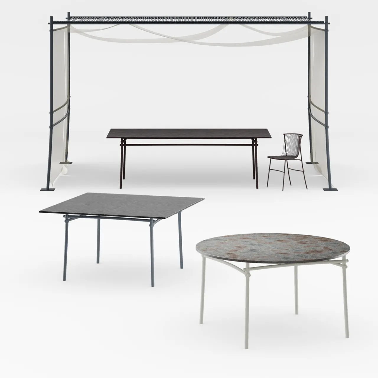 Un design industrial-chic di una raffinatezza senza tempo, questo tavolo da pranzo rotondo sarà un accento maestoso in un ambiente contemporaneo, idealmente abbinato al gazebo e agli altri mobili di Dante Negro. Progettato in collaborazione con Zanellato/Bortotto, è realizzato a mano in metallo laccato e zincato, con piano in pietra lavica naturale. Consultare il catalogo Artemest per altri progetti disponibili di questa serie.