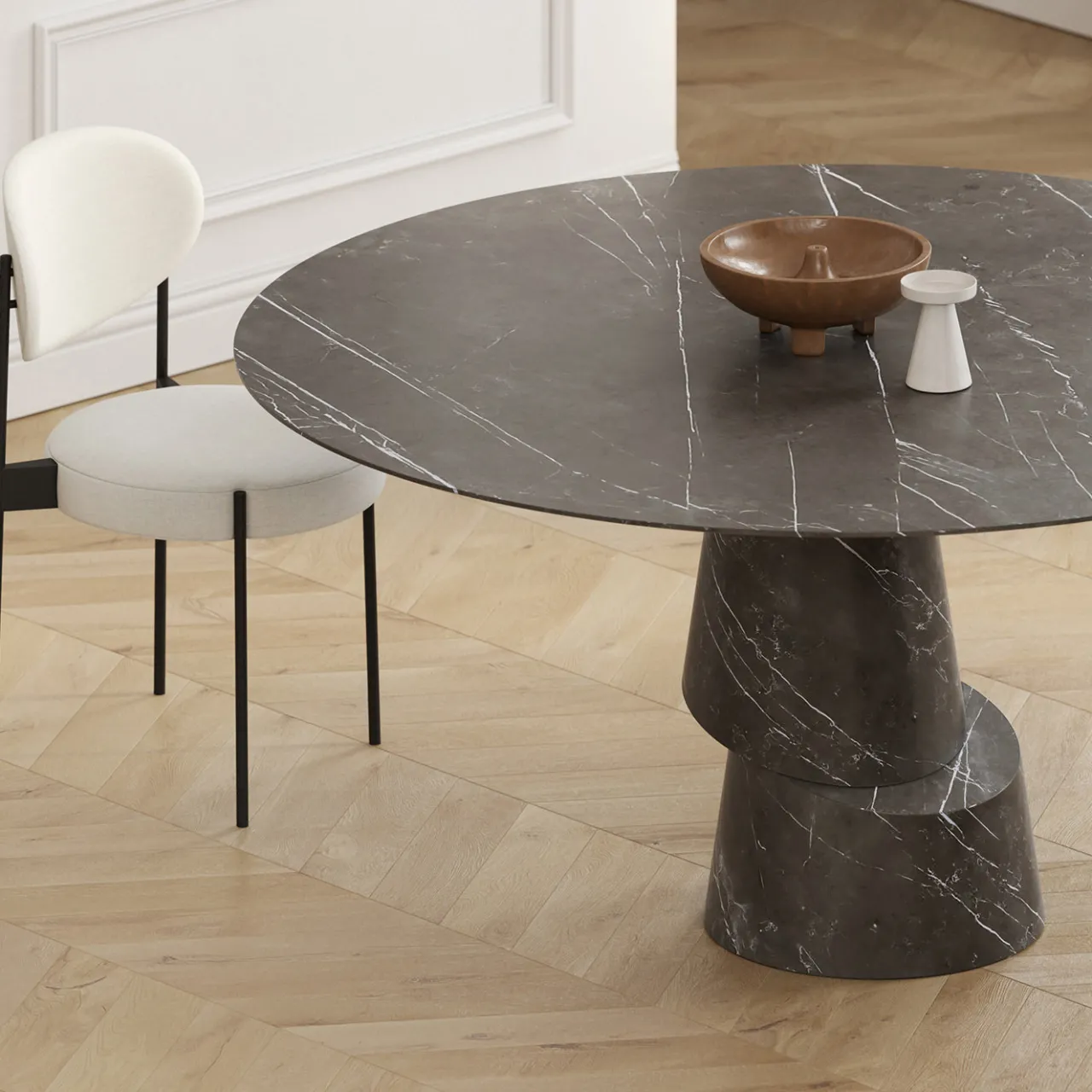 Il tavolo da pranzo rotondo in pietra grafite Slice presenta una base monolitica divisa da un taglio obliquo, creando una tensione visiva dinamica attraverso forme sovrapposte. Il design sfida le percezioni di equilibrio e gravità, mescolando massa e movimento in una composizione sorprendente. Riconosciuto per il suo design innovativo, questo tavolo incarna un raffinato equilibrio tra stabilità ed eleganza. Personalizzabile in dimensione e forma, il piano del tavolo può anche essere realizzato in varie pietre, offrendo versatilità. Contatta il Concierge per ulteriori informazioni.